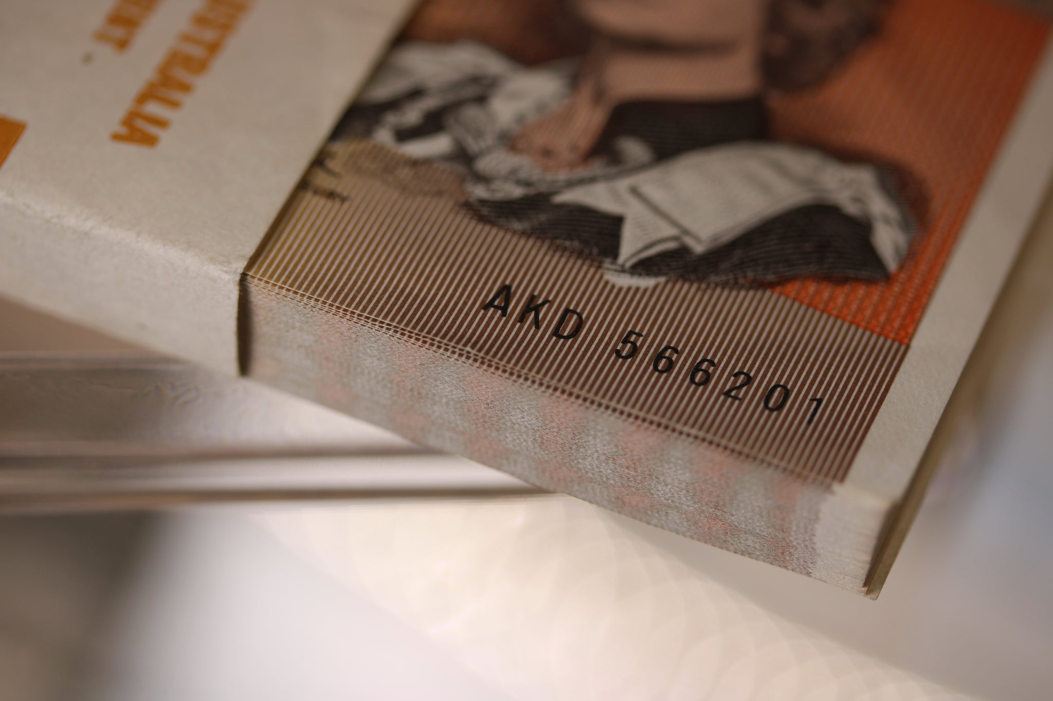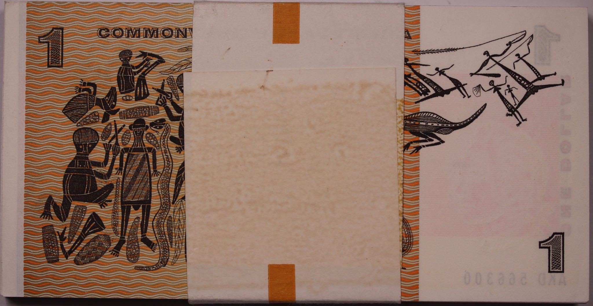 Rare and intact reserve bank bundle of 100 consecutive notes. Top note has a teller flick.