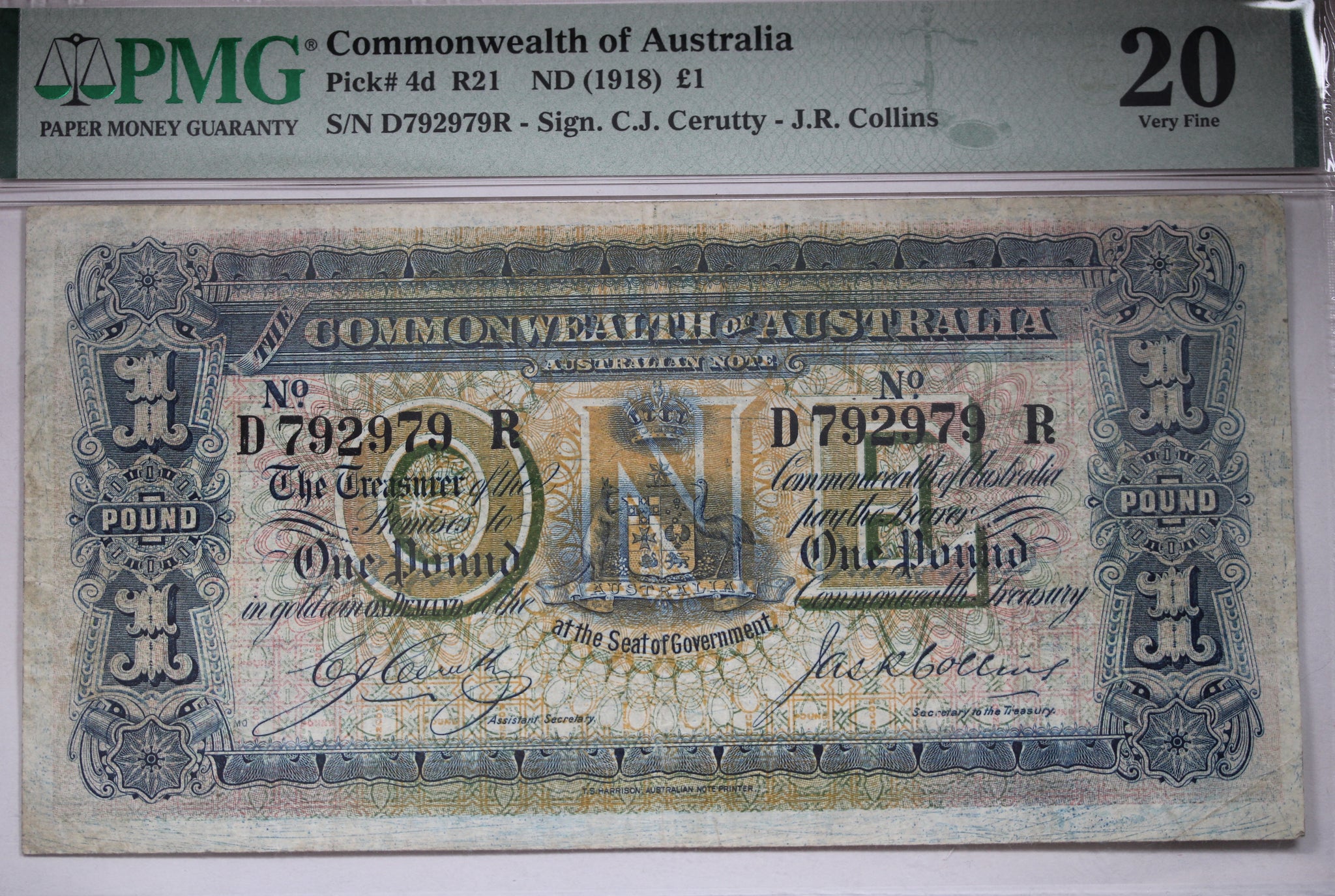 1918 Commonwealth of Australia One Pound Cerutty/Collins Banknote Very Fine 20