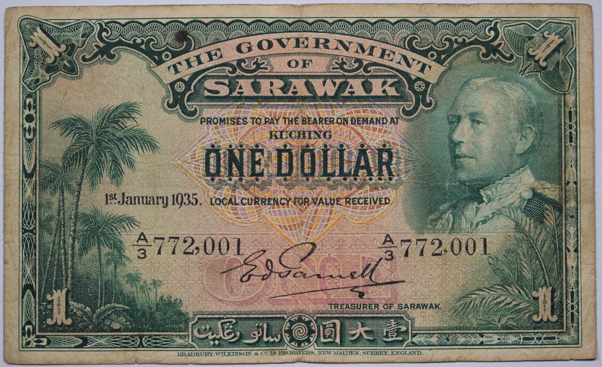 1935 Sarawak One Dollar Banknote Fine