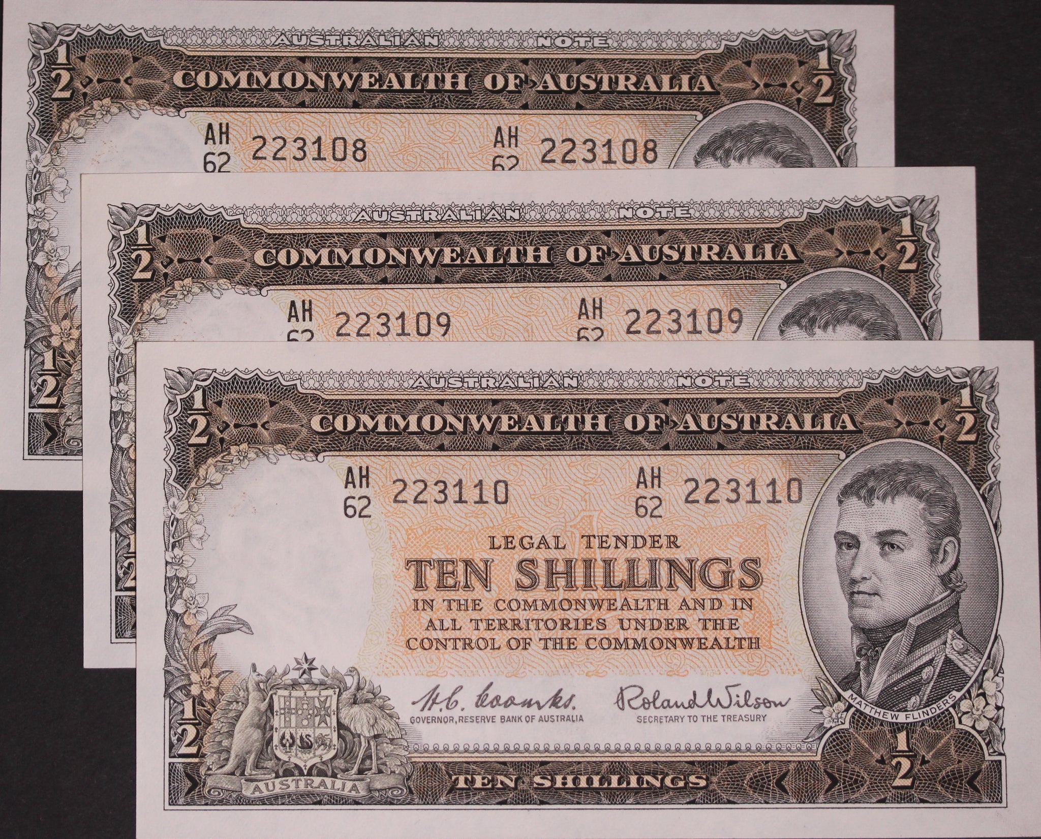 1961 Coombs/Wilson 10 Shilling Consecutive Trio gEF