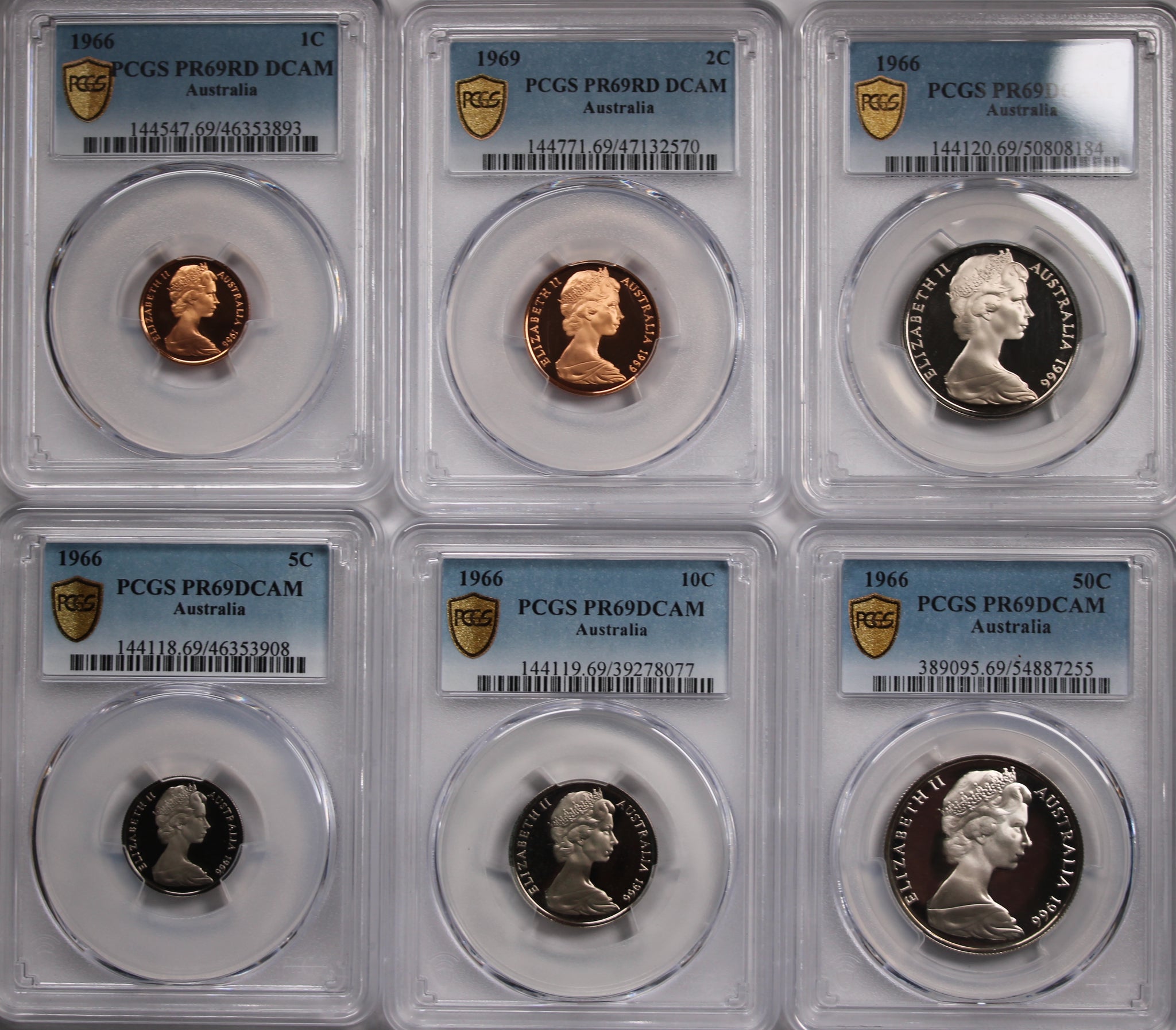 1966 Australian Proof Coin Set - All Graded PR69DCAM