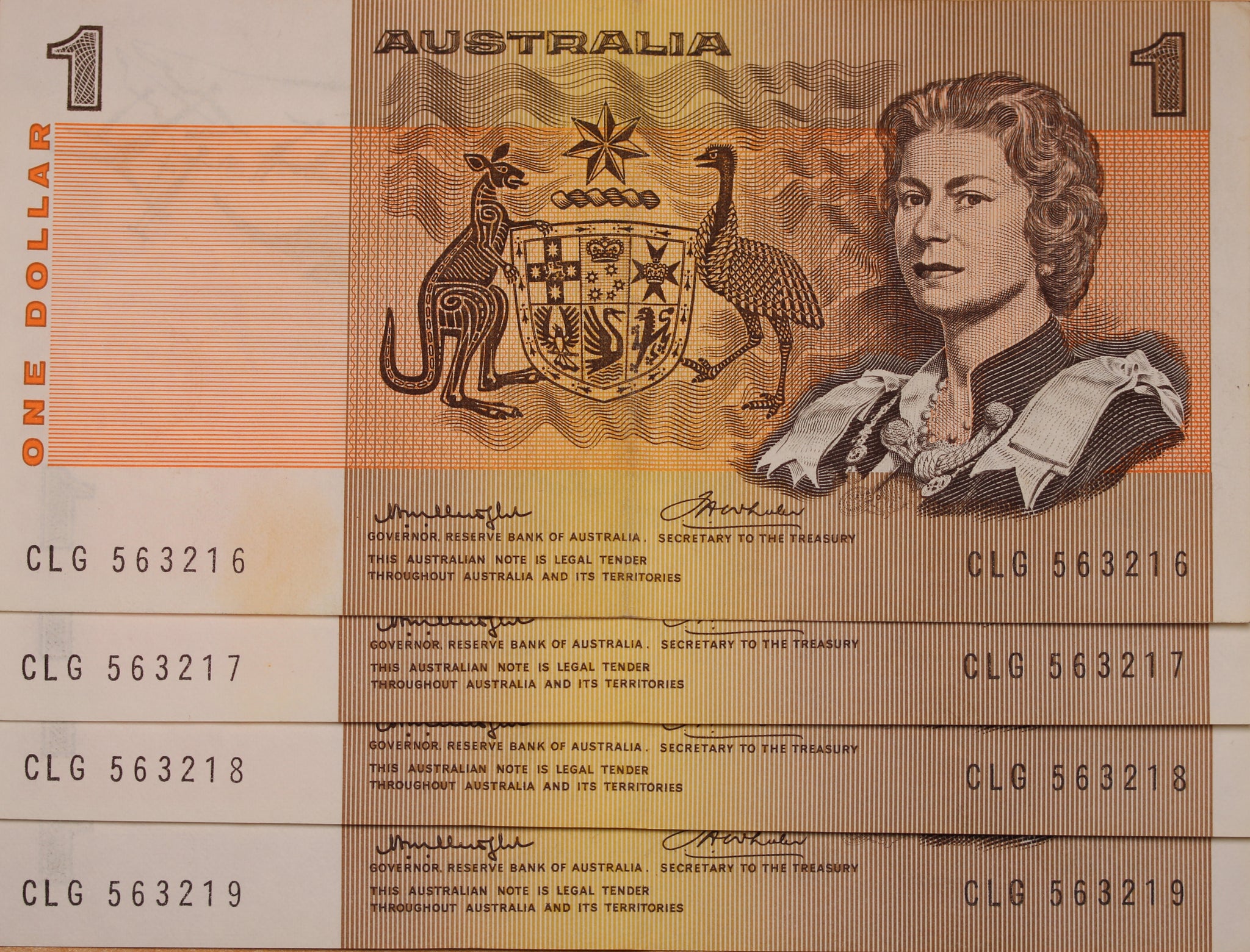 1976 $1 Knight/Wheeler Banknote EF Consecutive Run of 4