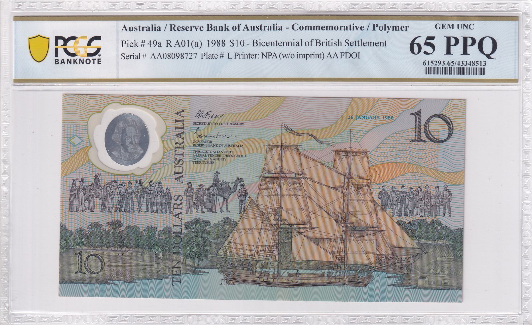 1988 Bicentennial $10 Banknote Gem UNC 65PPQ