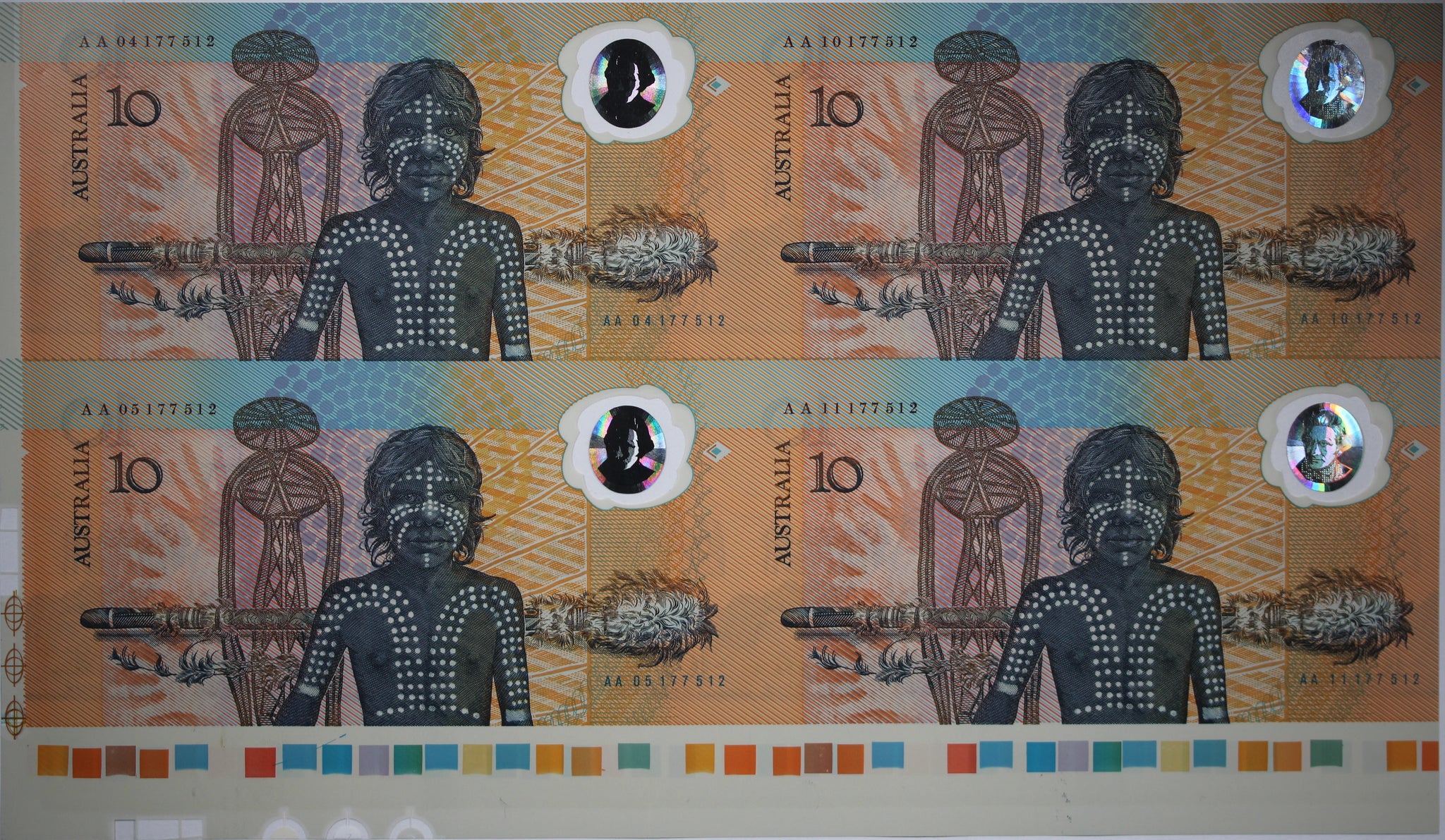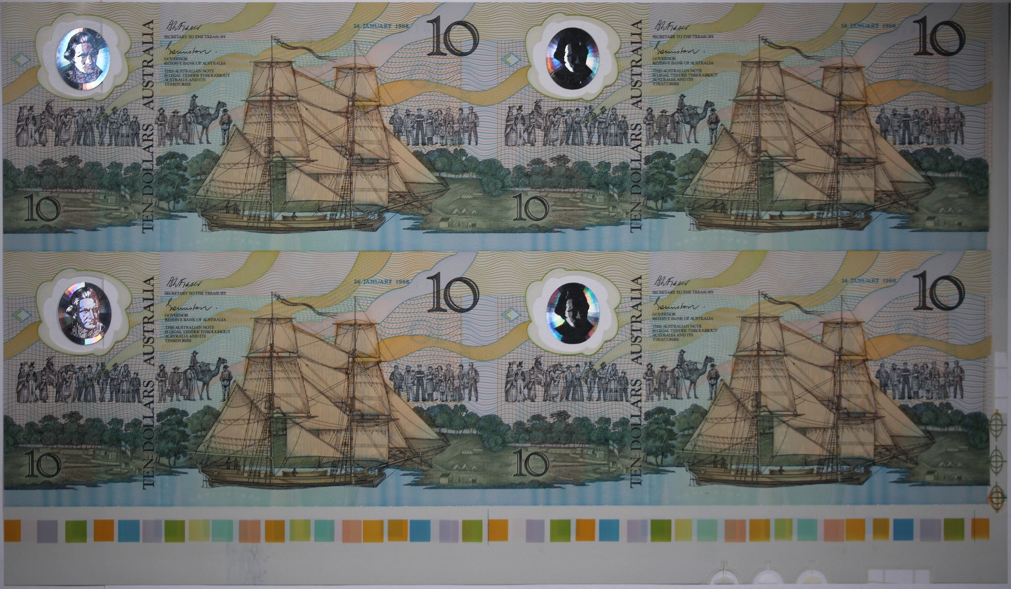 1988 Bicentennial $10 Banknote Uncut Block of 4 with Selvage