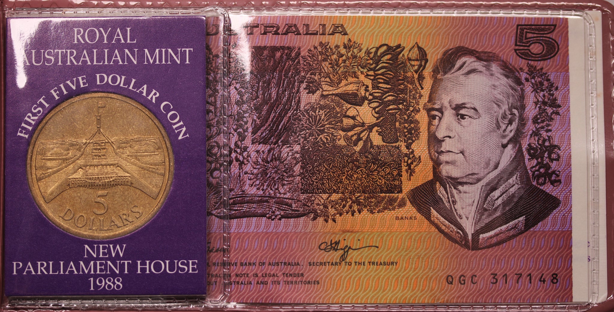 1988 The Coin Colony $5 Coin and Note Presentation Pair