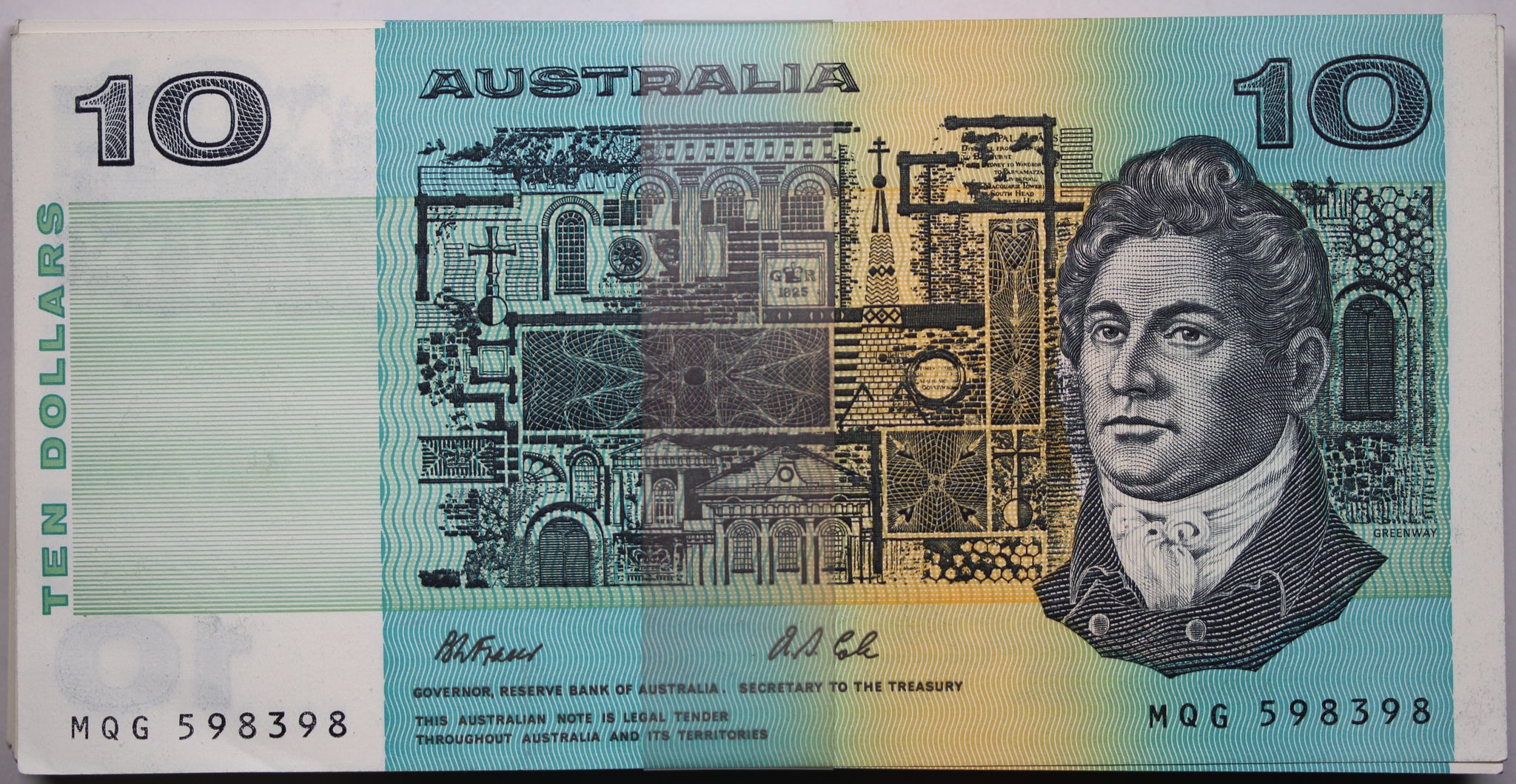 1991 $10 Australian Paper Note Bundle of 100 Fraser/Cole With PIL UNC