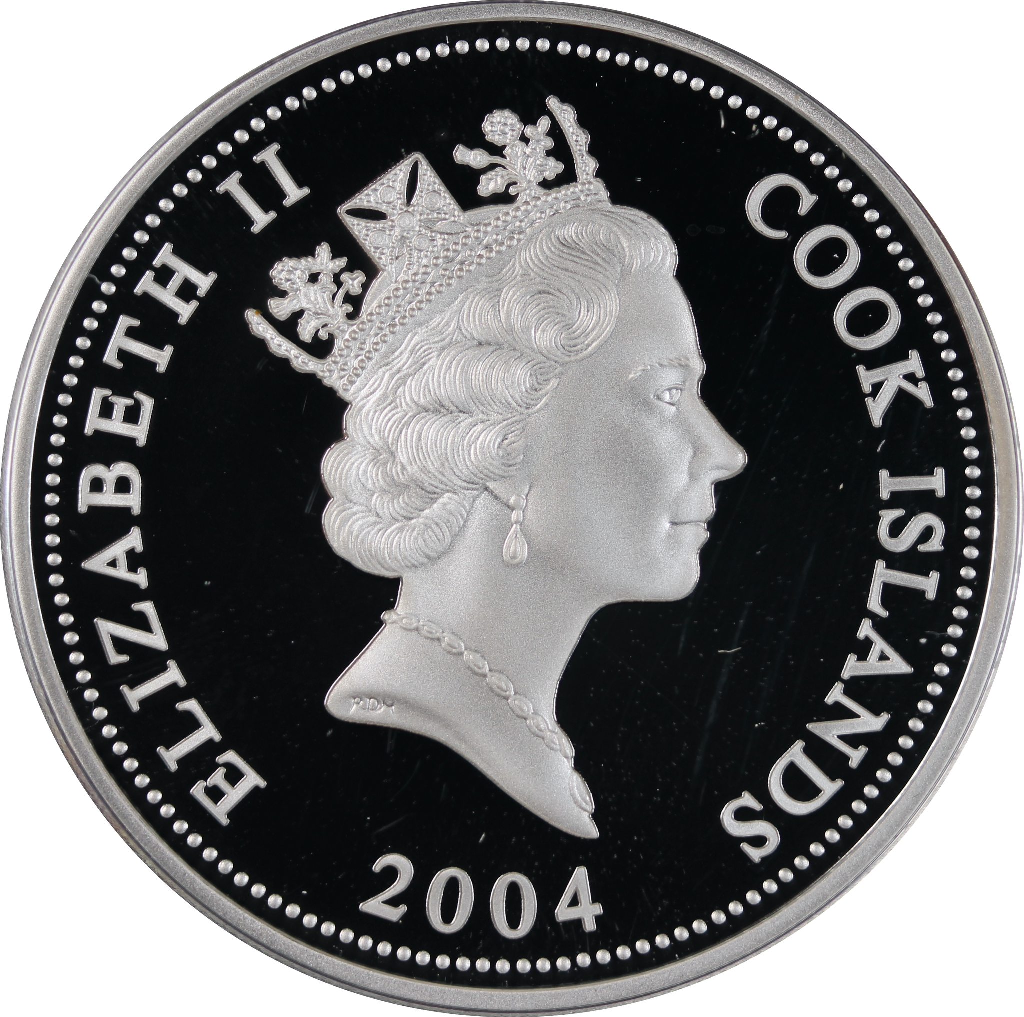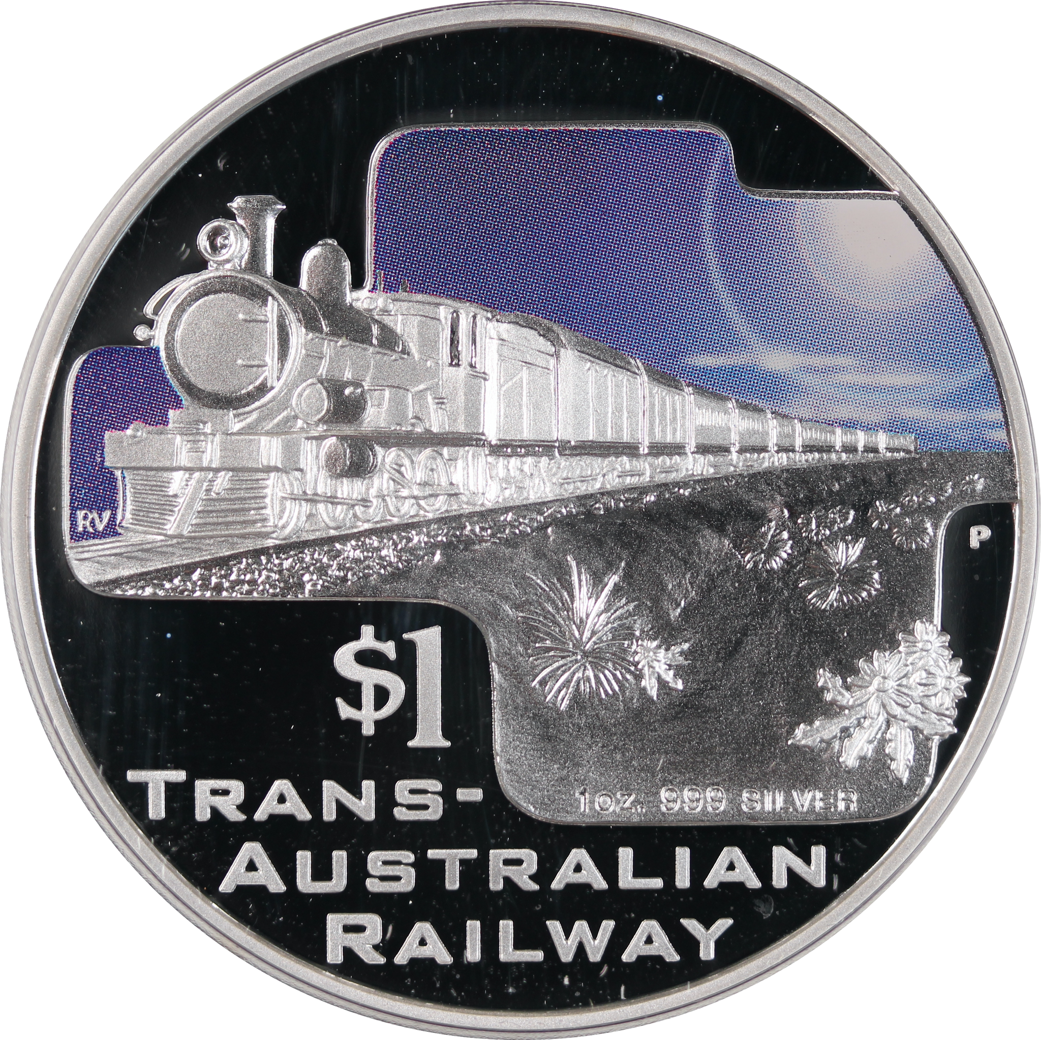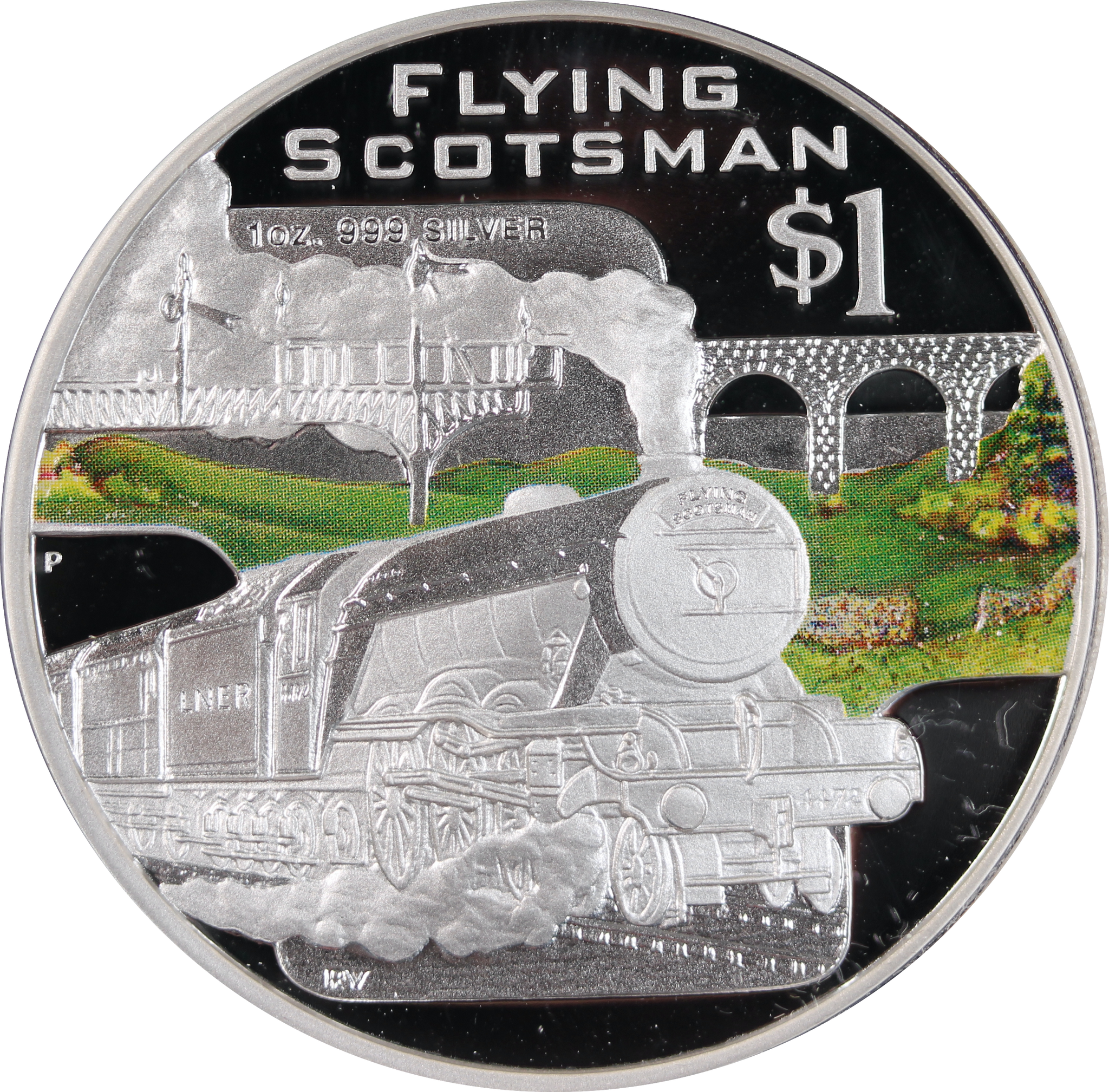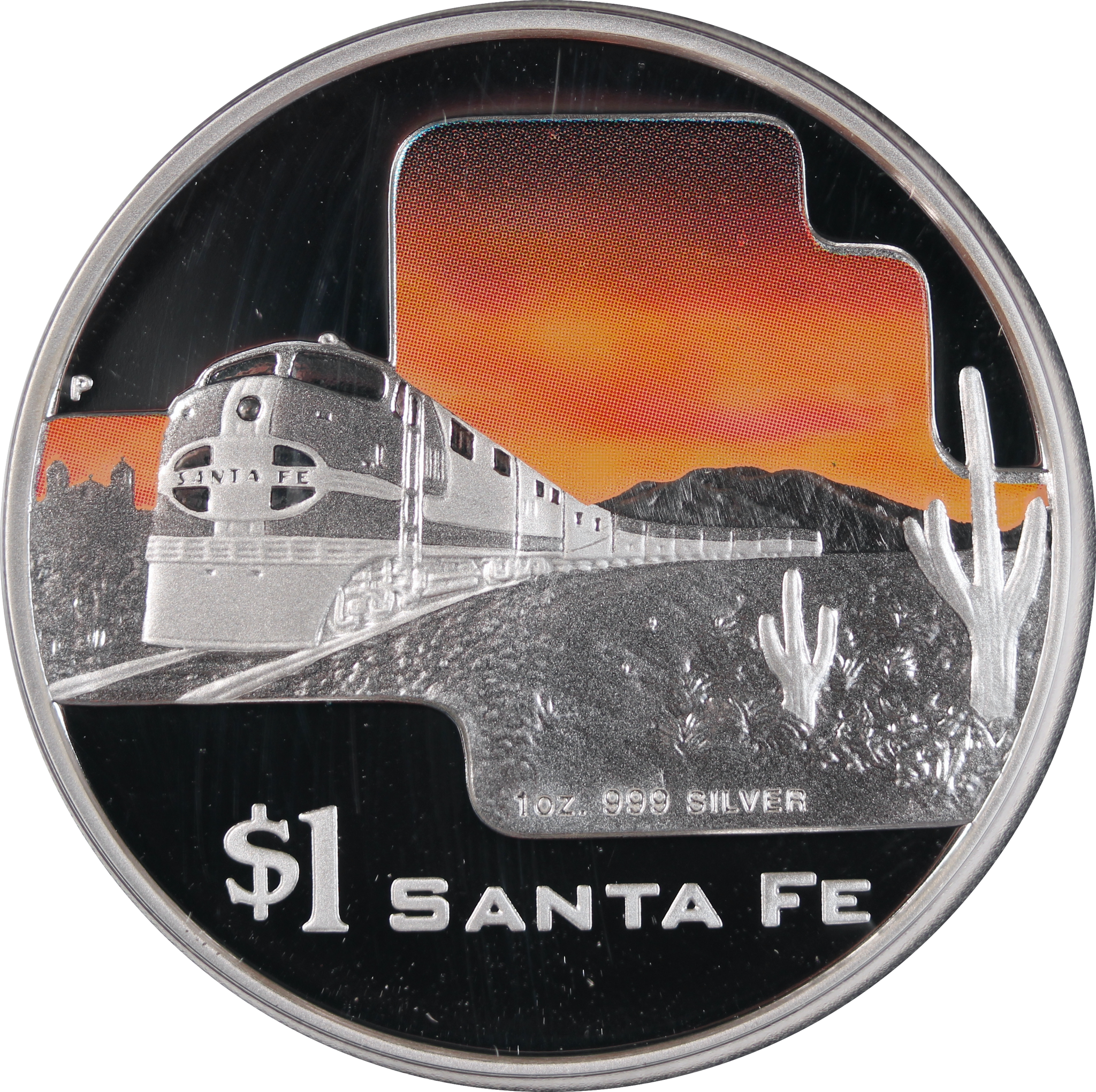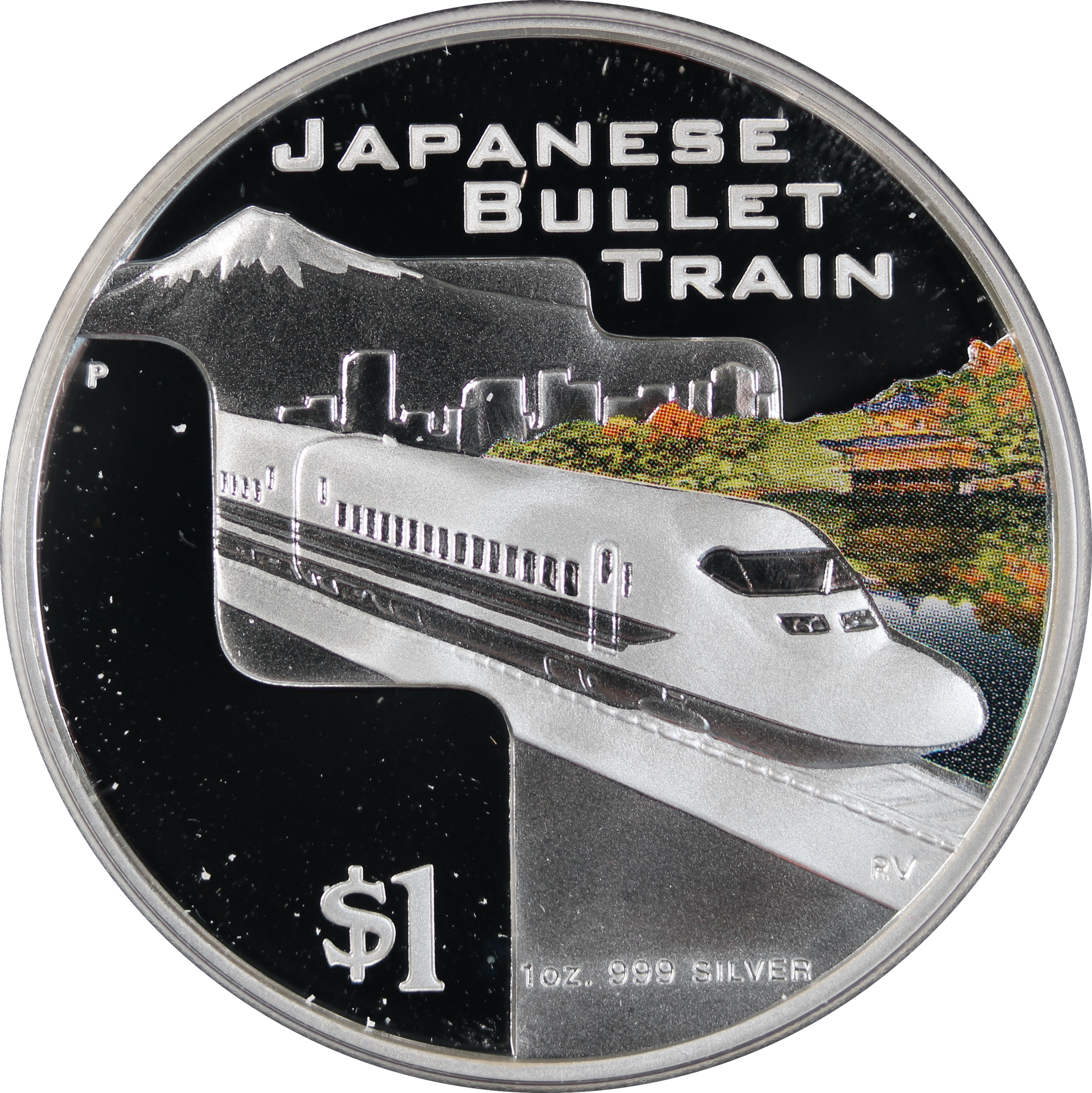 The 2004 Cook Islands Great Rail Journeys set features five 1-oz .999 silver proof coins celebrating iconic trains: the Shinkansen, Trans-Australian Railway, Flying Scotsman, Canadian Pacific Railway, and Atchison Topeka & Santa Fe. Struck by the Perth Mint, the set has a mintage of 1,500 and includes a certificate.