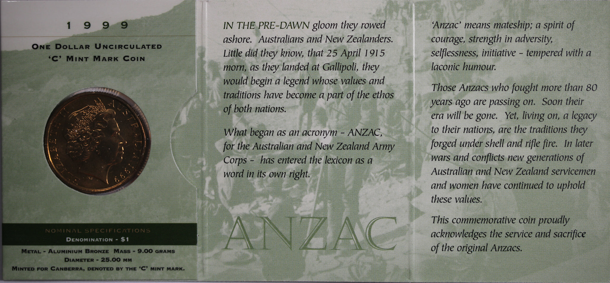 1999 $1 The Last ANZACs UNC - 'C' Mintmark