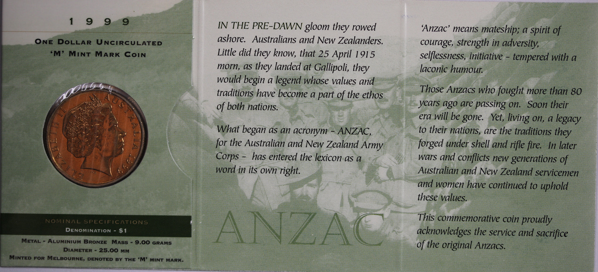 1999 $1 The Last ANZACs UNC - 'M' Mintmark