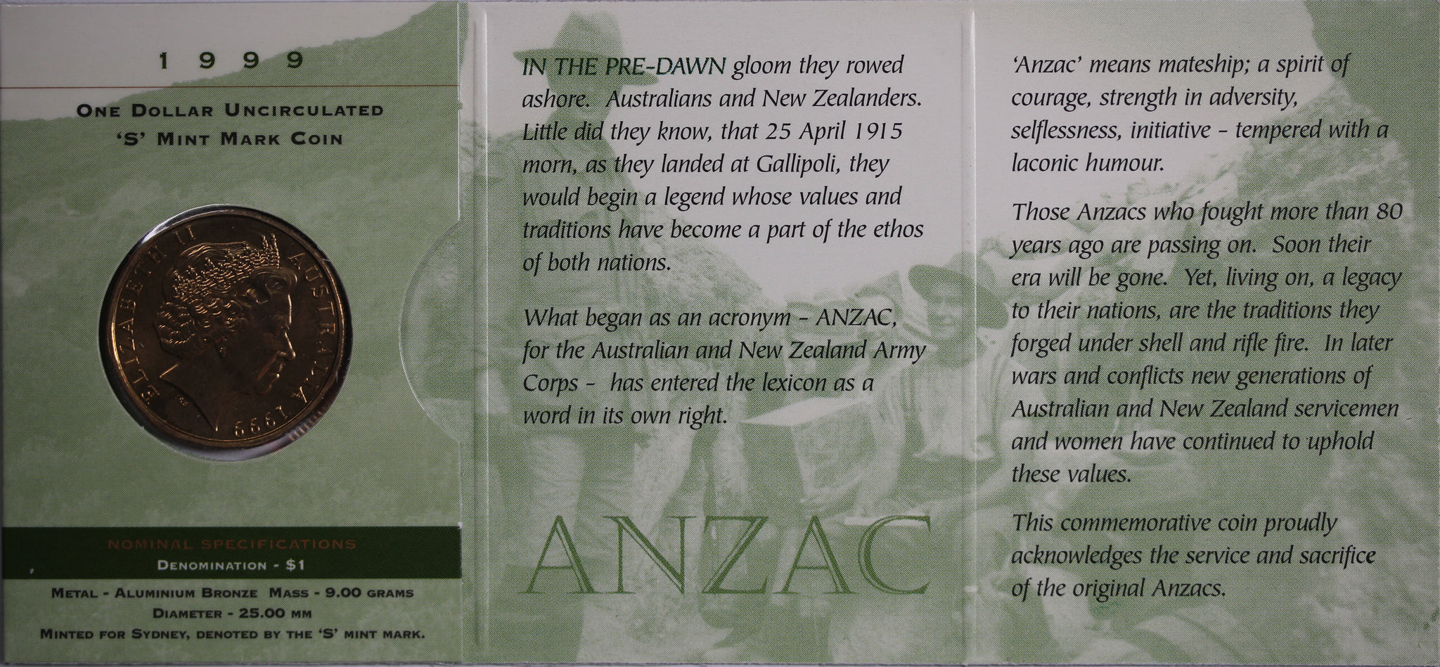 1999 $1 The Last ANZACs UNC - 'S' Mintmark