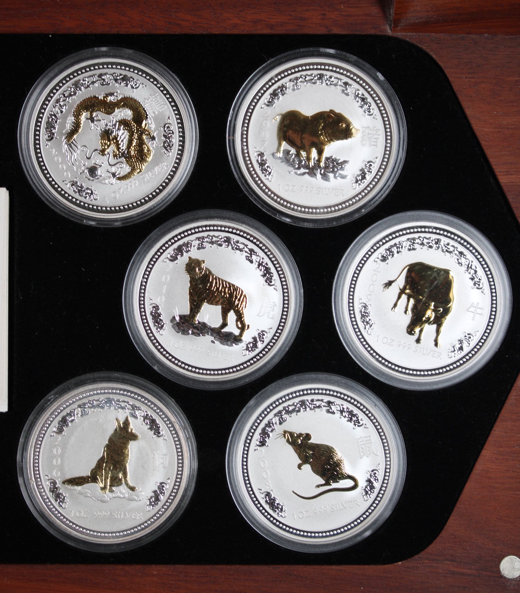 1999-2010 1oz Gilded Silver Lunar Series I - 12 Year Coin Collection in Box