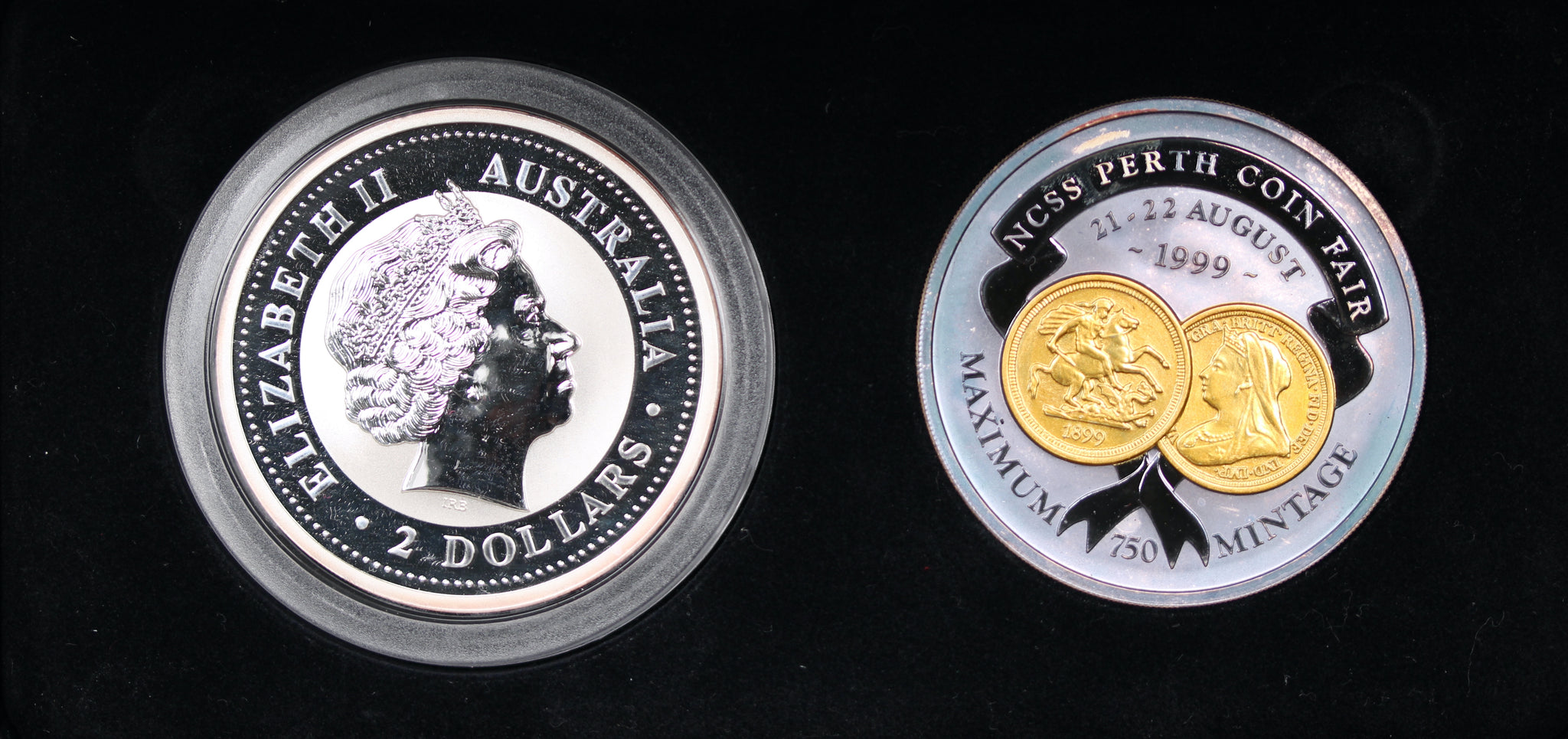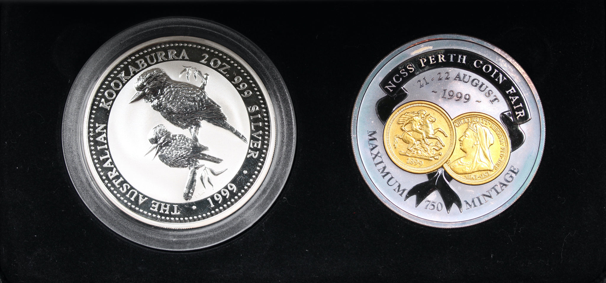 1999 Australian Kookaburra 2oz Silver Coin & Medallion Set - Perth Coin Fair