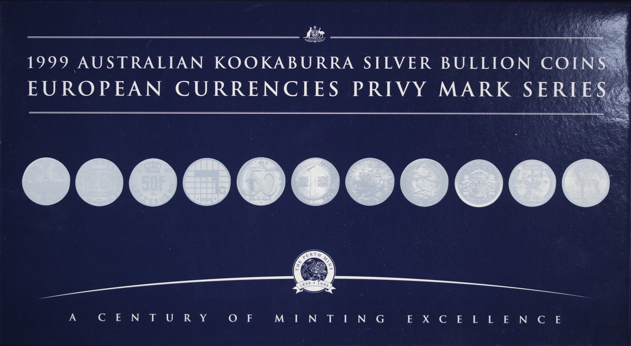 1999 Australian Kookaburra- European Currencies Privy Mark 1oz Silver Set