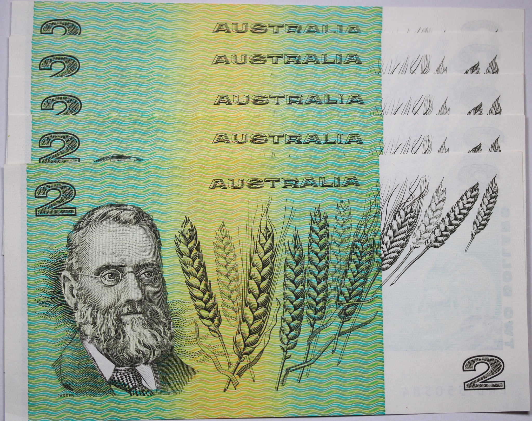 $2 1985 Johnston/Fraser Consecutive run of 5 aUNC