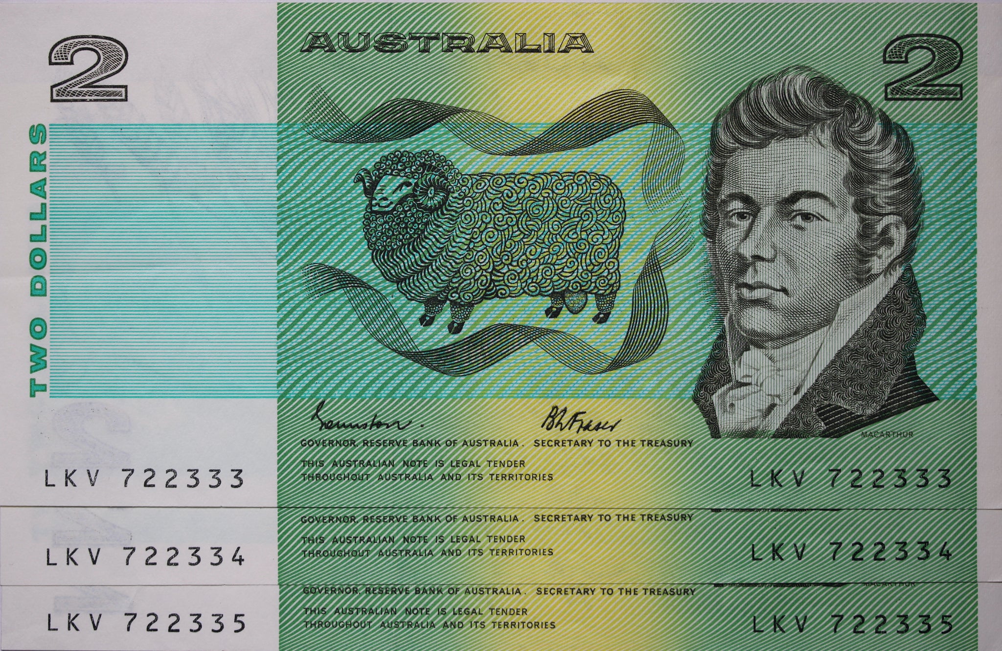 $2 1985 Johnston/Fraser Consecutive Trio EF-aUNC