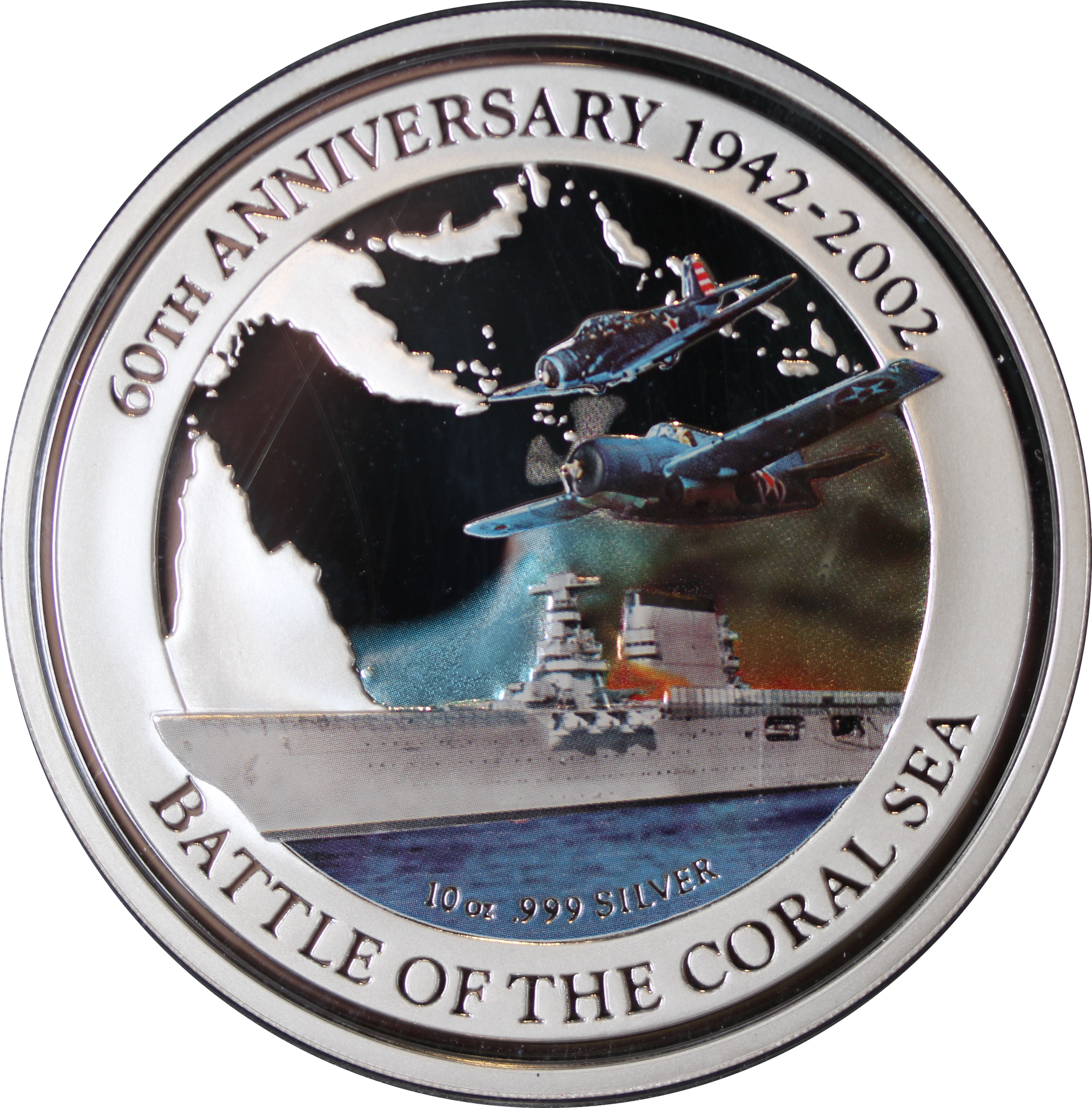 2002 Battle of the Coral Sea 10oz Silver Coloured Proof Coin