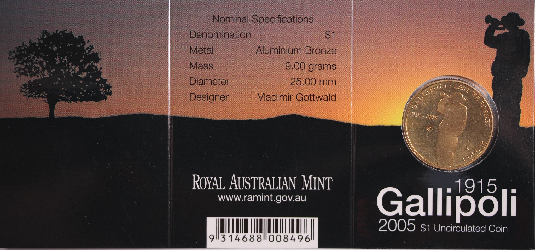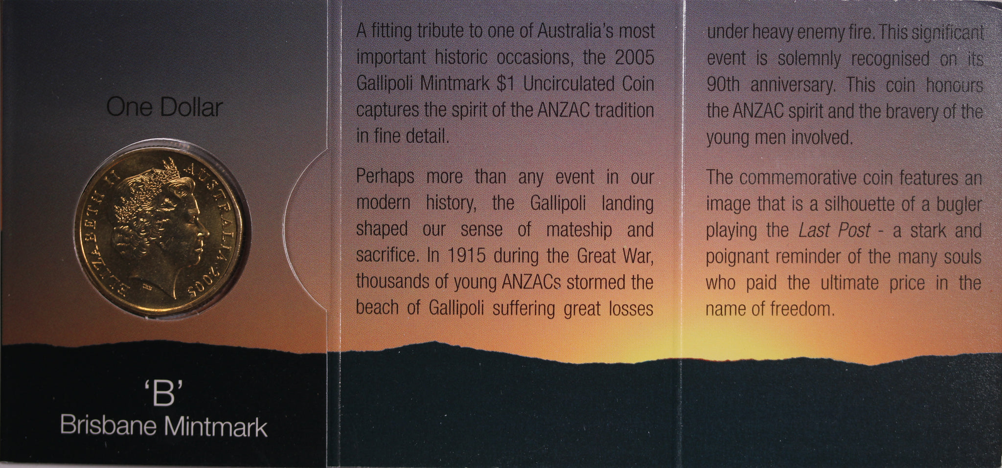 2005 $1 Gallipoli 1915 UNC - 'B' Mintmark