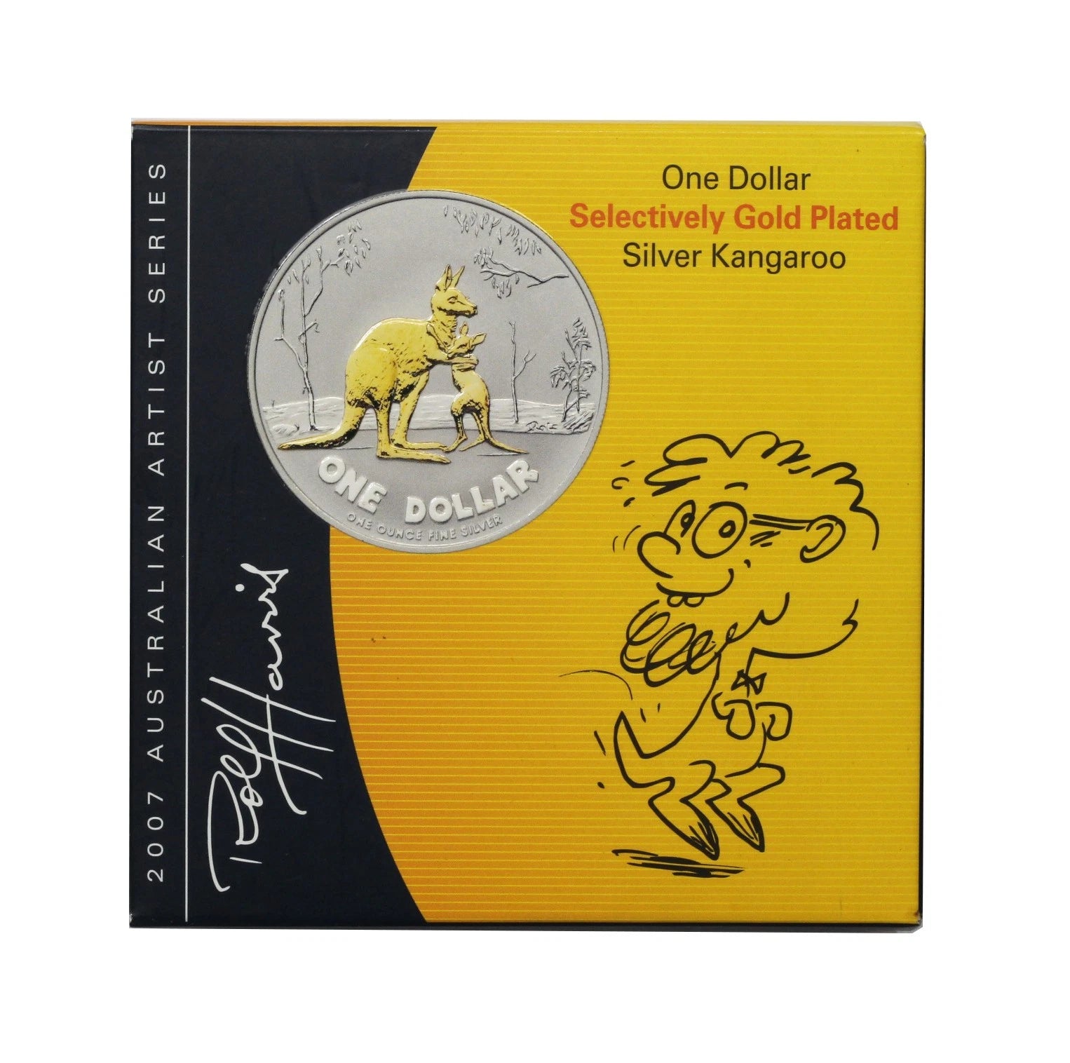 2007 $1 Australian Artist Kangaroo 1oz Silver Selectively Gold Plated Proof Coin