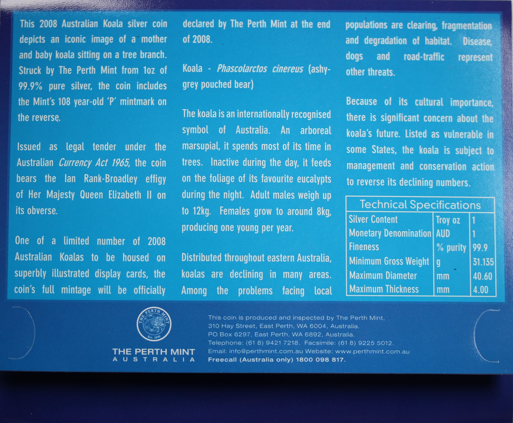 2008 Australian Koala 1oz Silver Coin in Presentation Card