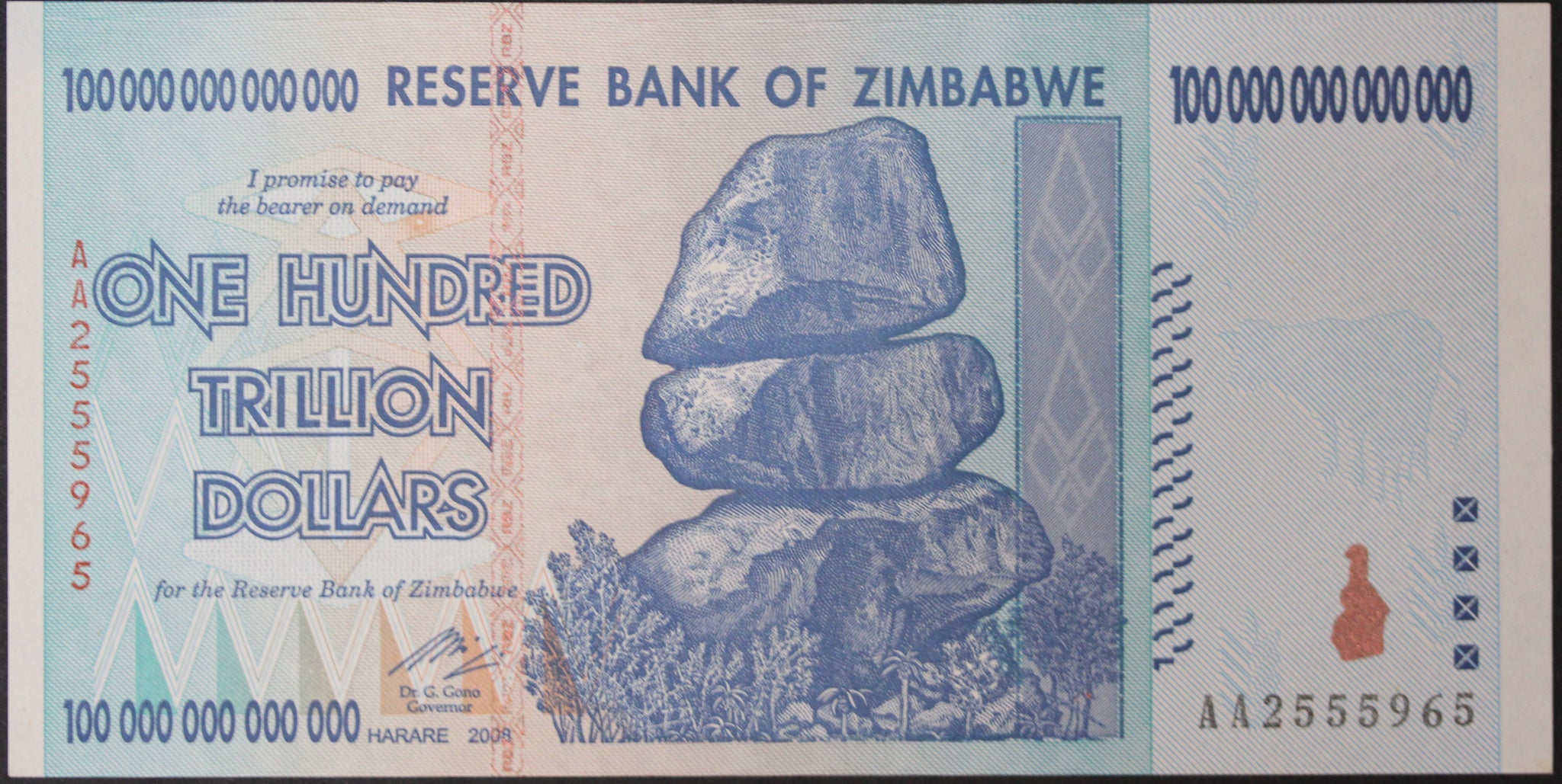 2008 Zimbabwe 100 Trillion Dollar Note UNC