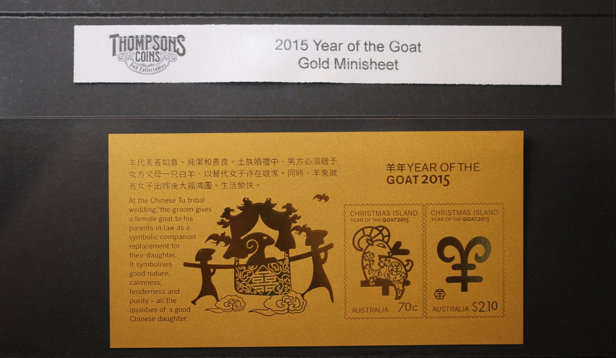 The 2015 Year of the Goat, also known as the Year of the Sheep or Ram, is the eighth sign in the Chinese Zodiac and is associated with creativity, gentleness, and harmony. In Chinese culture, the goat symbolises peace, kindness, and artistic talent. People born under this sign are considered calm, compassionate, and sensitive to the needs of others. The Year of the Goat is believed to bring a focus on balance, beauty, and family. Celebrations in 2015 were marked by vibrant festivals, traditional symbols of good fortune, and commemorative items that honoured the goat’s graceful and nurturing nature.