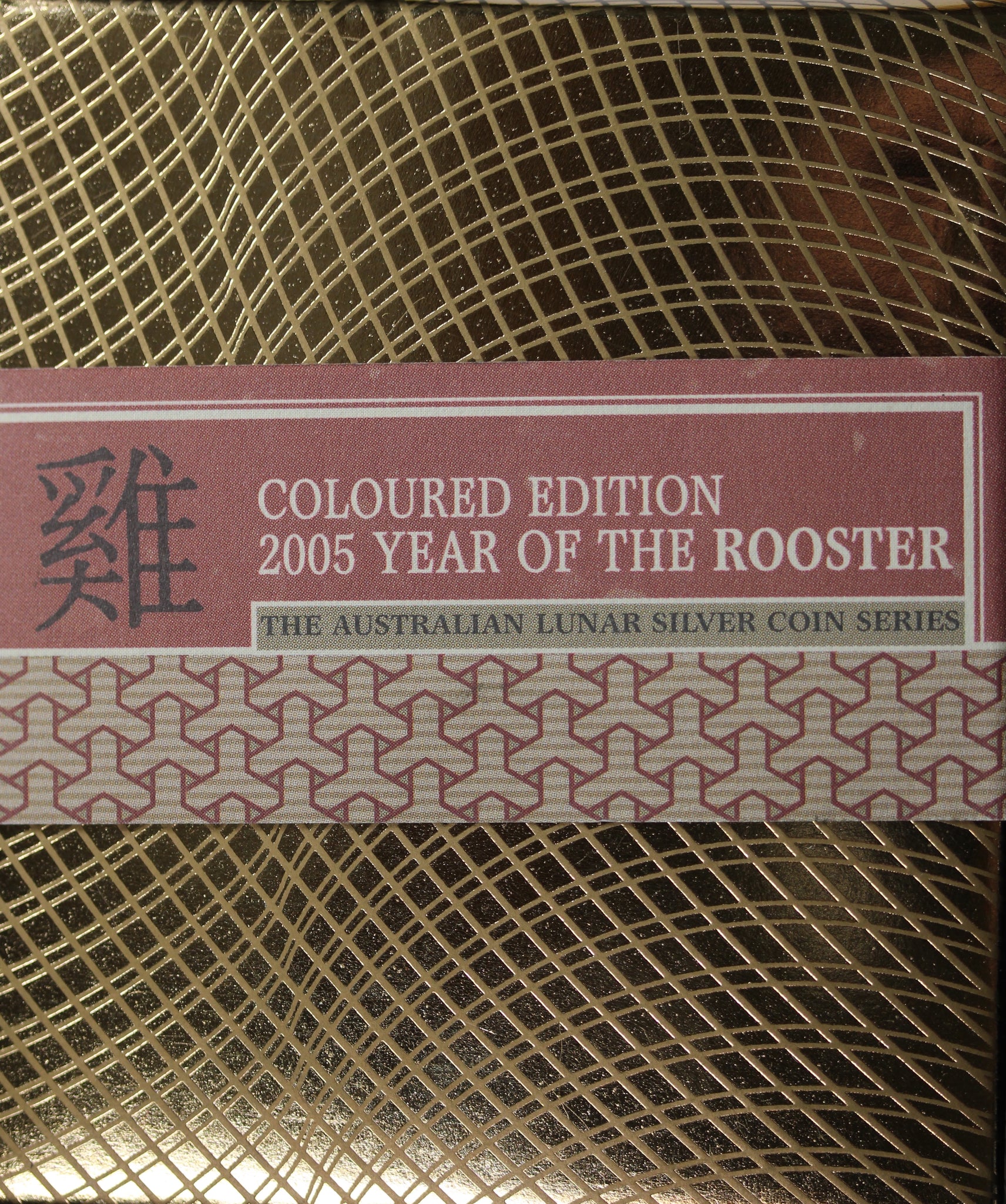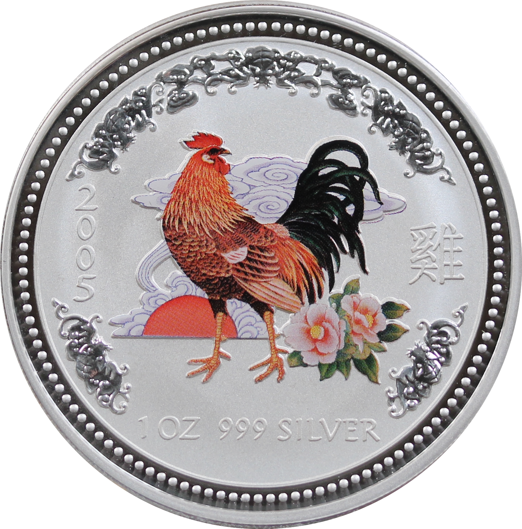 2005 $1 Lunar Year of The Rooster 1oz Silver Coloured Coin