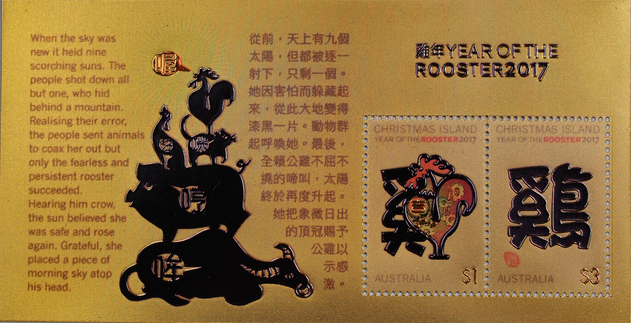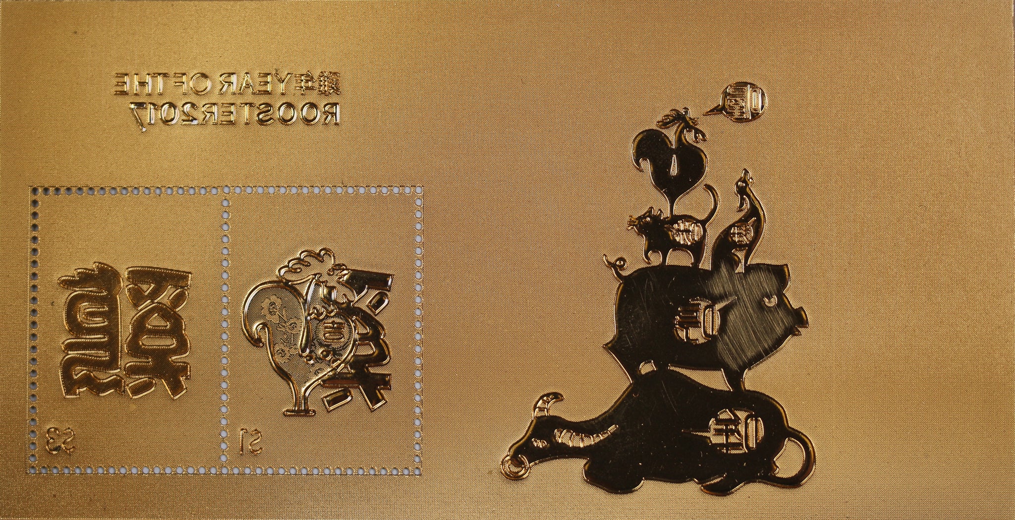 2017 Lunar Year of the Rooster Gold Foil Stamp Minisheet Limited Edition