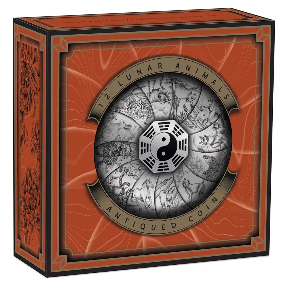 2023 12 Lunar Animals 5oz Silver Antiqued Coloured Coin