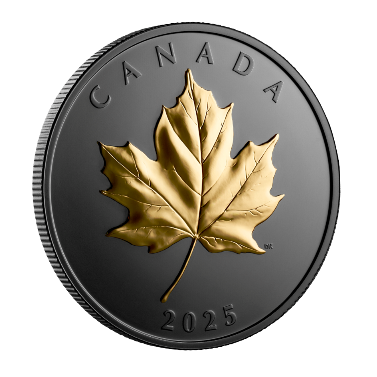 Among the many fascinating leaves found in Canada’s eastern forests, the sugar maple truly stands out. Its distinctive outline, deeply veined lobes, and irregularly toothed edges give it a familiar-yet-intriguing look that sets it apart from the rest, and these iconic features are especially prominent on this coin from the Royal Canadian Mint. Enhanced with selective gold plating, this 1-oz. 99.99% pure silver coin features a black rhodium plated field that puts all the focus on the elegant maple leaf, creating a striking contrast that transforms the beloved Canadian emblem into a shining symbol of resilience and natural grace.