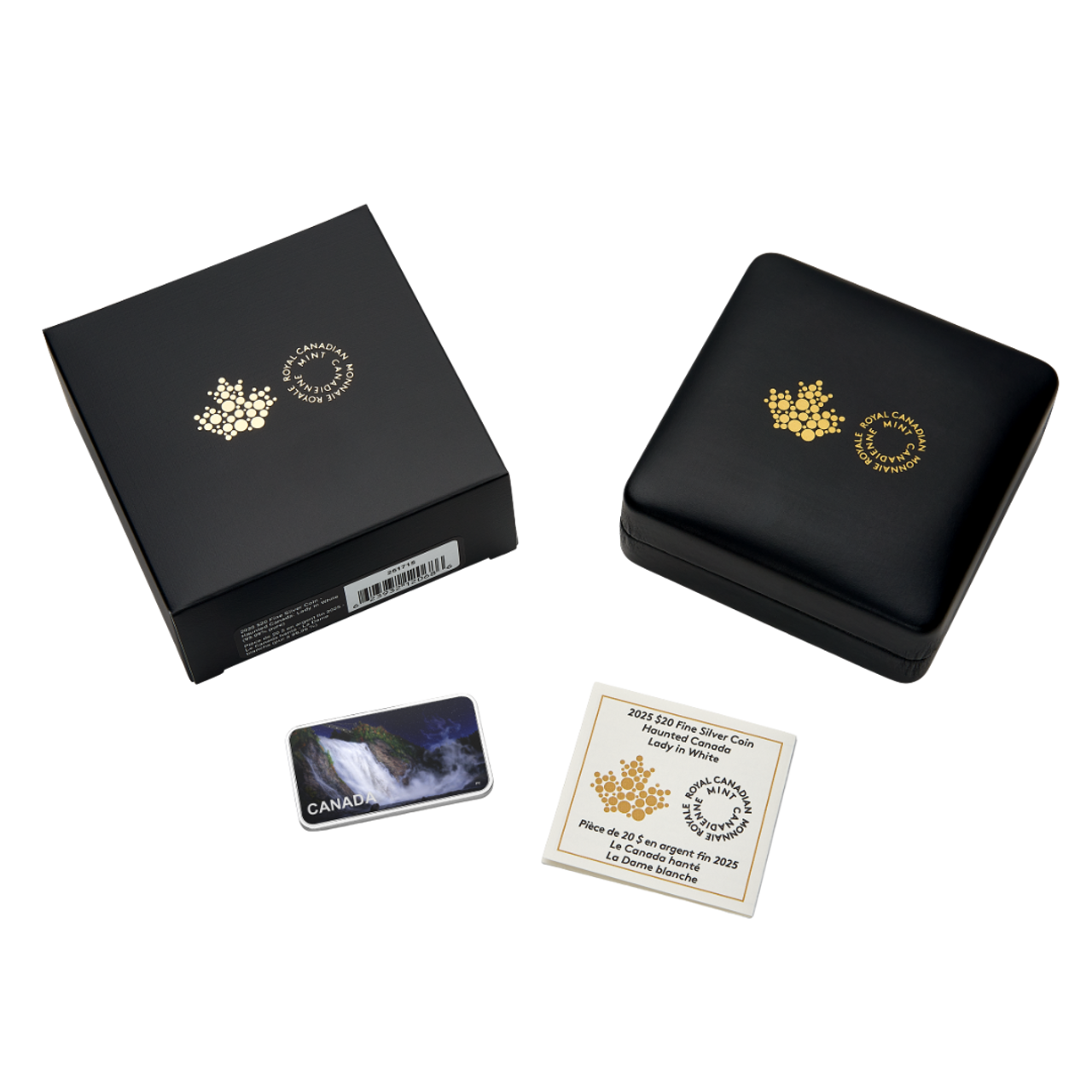- Unlike previous Haunted Canada coins, this ghost story is presented on a rectangular 1-oz. 99.99% pure silver coin, with a horizontal perspective of the falls, the mist… and the Lady in White!