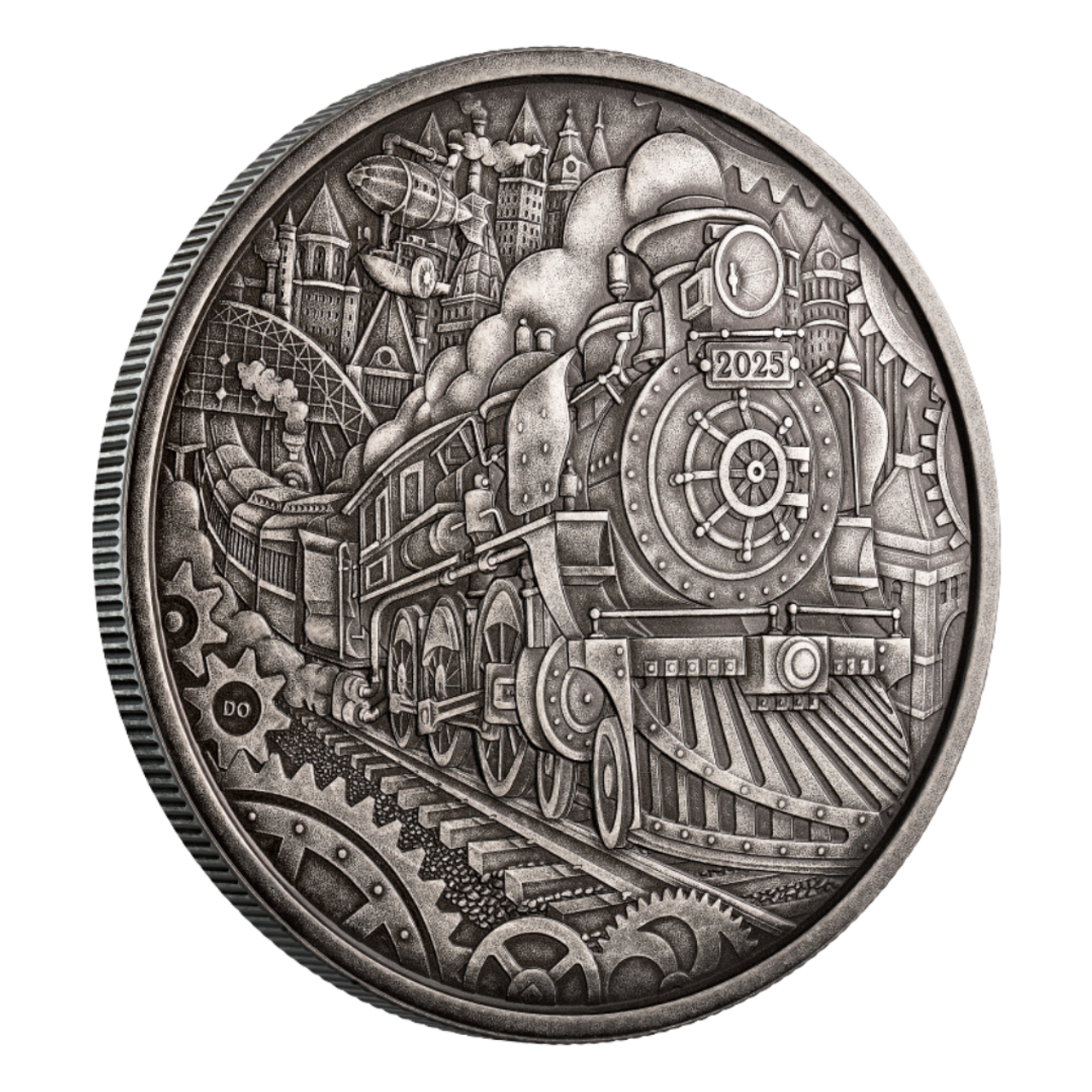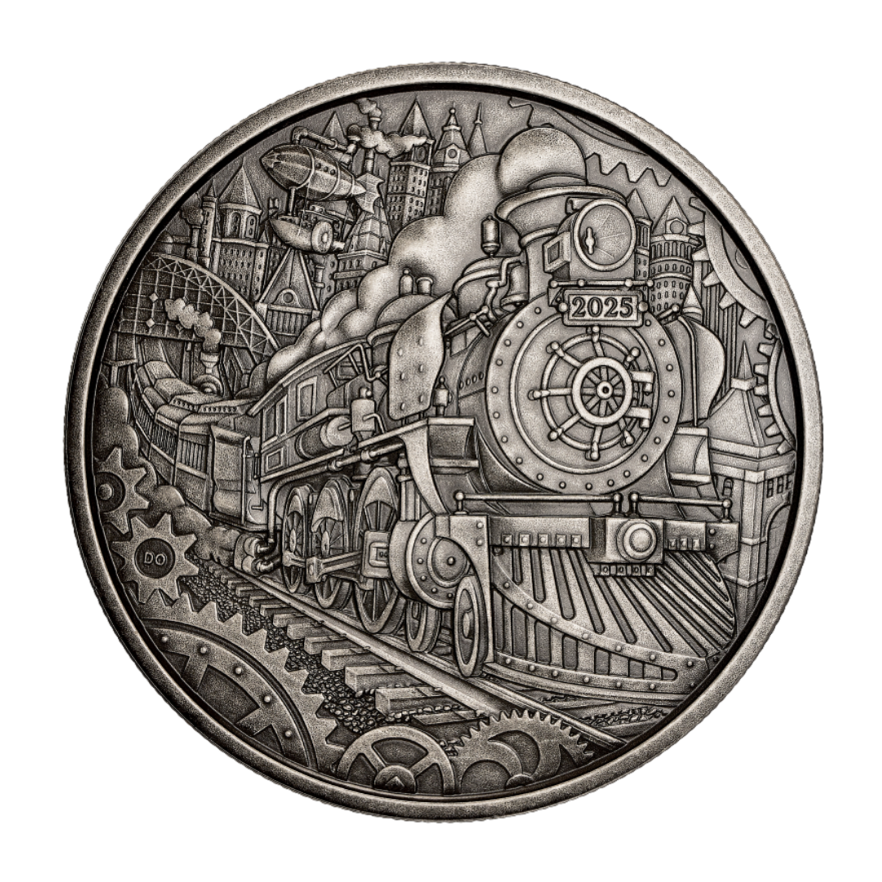 - Gears are a key steampunk design element: these are represented on the reverse and on the obverse, too, where gear shapes form a fun industrial-themed pattern.
