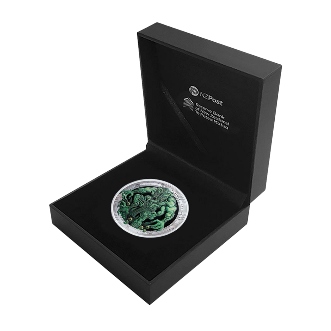 This 1oz silver proof coin is minted from 0.999 silver, with a mirrored proof finish and a colour illustration of a forest taniwha by New Zealand artist Dave Burke. Taniwha are also known to dwell in te ao kikokiko (the terrestrial realm) and there are many narratives speaking of them. These stories give names and locations of taniwha, and they also describe what form and appearance each taniwha assumes. There are also waiata (songs) and haka (dances) attributed to their taniwha. Taniwha in their earthly form are often elemental in apperance, such as wood, wind, water or stone. Whether celestial or terrestrial, taniwha are a special part of te ao Māori and the peoples of Aotearoa New Zealand.