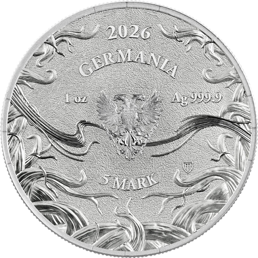 The Germania Mint double-headed eagle is surrounded by the roots of Yggdrasil and golden threads of fate. In some places, the threads are broken, symbolizing that while the past shapes destiny, it is possible to break free from it and begin a new path.