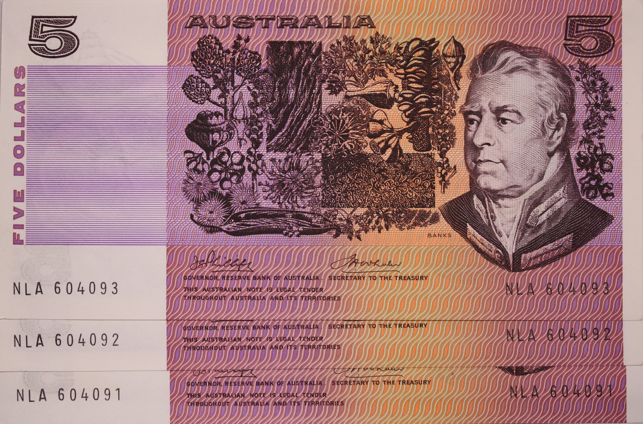$5 1972 Phillips/Wheeler aUNC Consecutive Trio