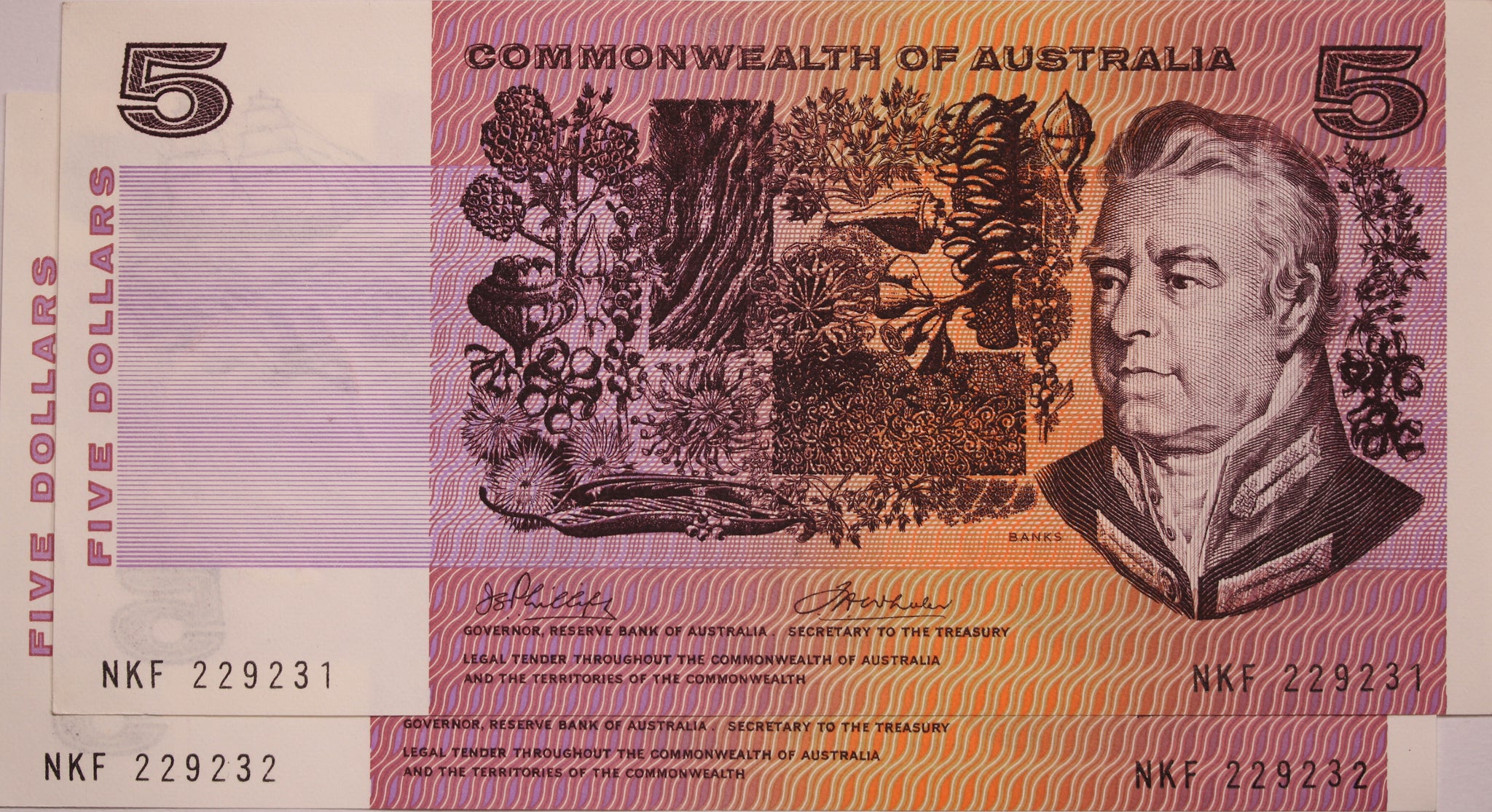 $5 1972 Phillips/Wheeler Consecutive Pair aUNC (NKF Prefix)