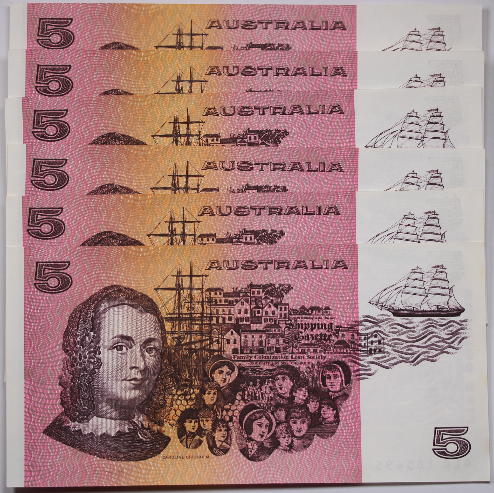 $5 1991 Fraser/Cole Consecutive run of 6 aUNC