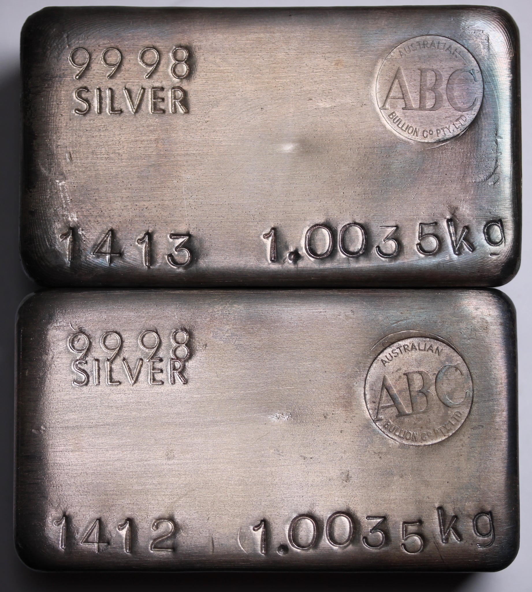 ABC Vintage Silver 1kg Cast Bar Consecutively Numbered Pair