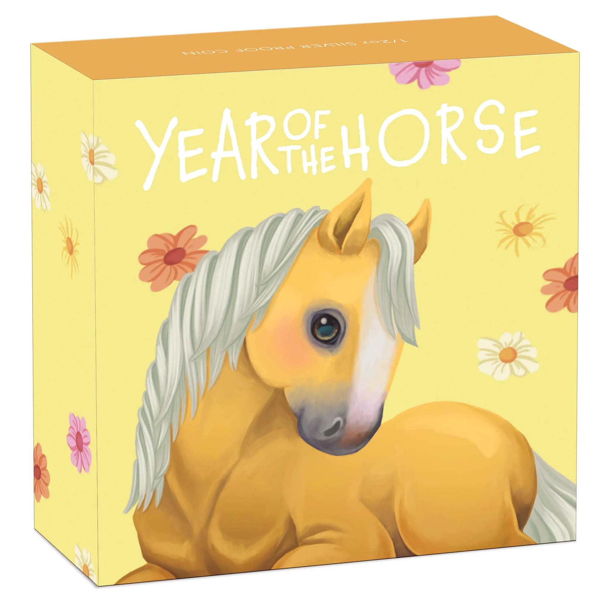 The coin’s reverse portrays a coloured representation of a happy young horse resting on grass adorned with delicate flowers and a dragonfly fluttering above. The Chinese character for ‘horse’, the inscription ‘YEAR OF THE HORSE’ and The Perth Mint’s ‘P’ mintmark are also incorporated in the design.