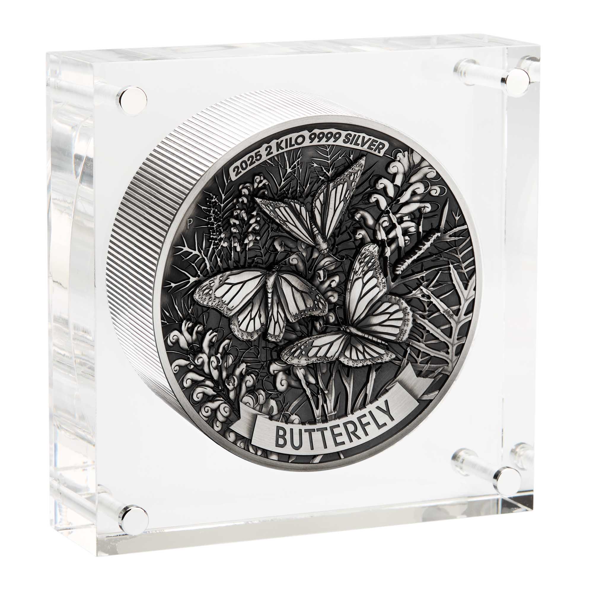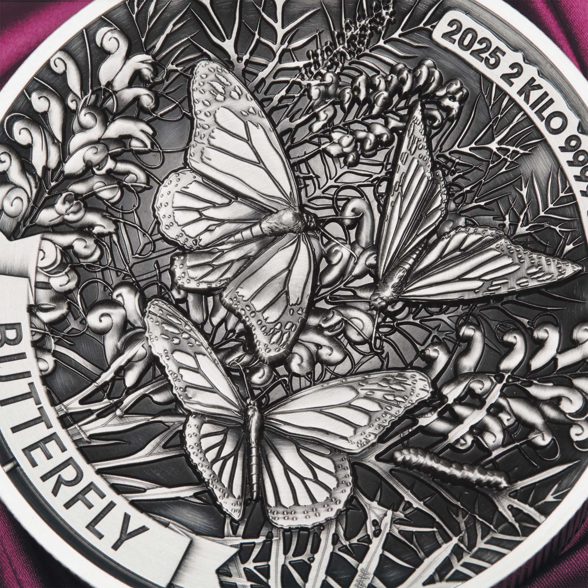 Butterfly 2025 2 Kilo Silver High Relief Antiqued Coin