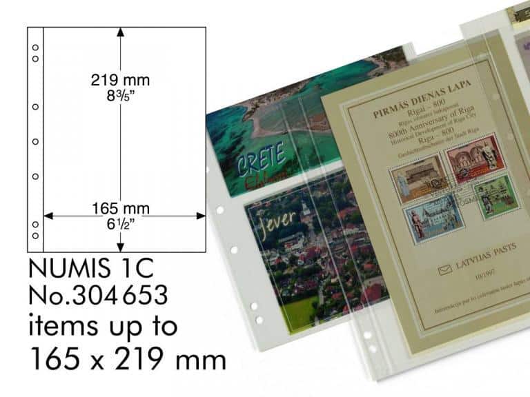 NUMIS coin sheets 1C, 1 compartment for coin sets.Compartment size (h/w): 165x219mm