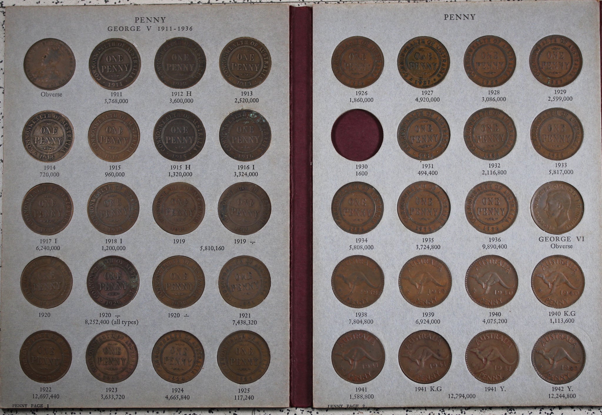 A great starting point for a Penny collector or for someone who doesn't have the time to put together a set one coin at a time!Note: missing key dates 1930 but a mostly complete set and includes 1925 and 1946Grades range from VG to EF.