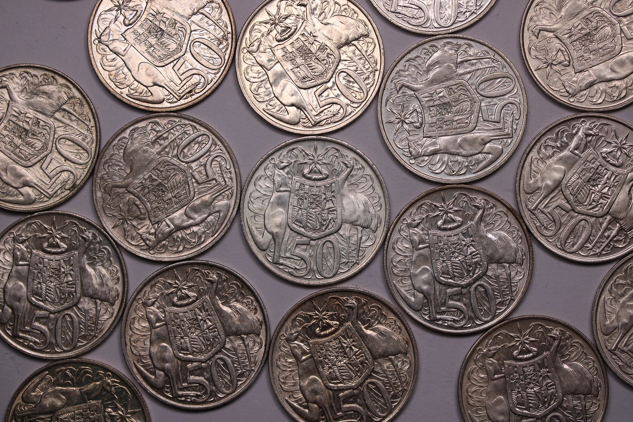 The round 50c was a one year only type. It was quickly realised that producing these coins with an 80% silver content was not feasible due to the value of silver.