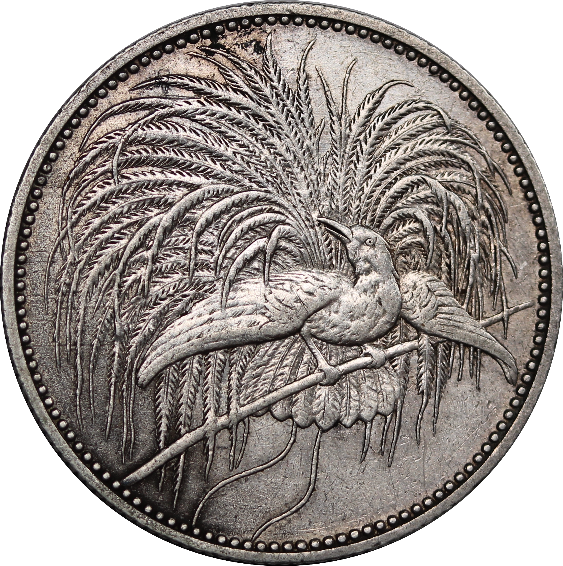 The 1894A German New Guinea Silver 1 Mark is a rare colonial coin issued under German administration for use in the Pacific territory of New Guinea. Struck in Berlin (“A” mintmark), it features the imperial German eagle on the obverse and tropical motifs—palm branches and native flora—on the reverse, symbolizing Germany’s overseas ambitions. Composed of .900 fine silver, the coin is part of a short-lived series minted between 1894 and 1895 before being withdrawn when the mark was replaced by the German colonial rupie. Today, it is highly sought after for its artistry and historical significance.