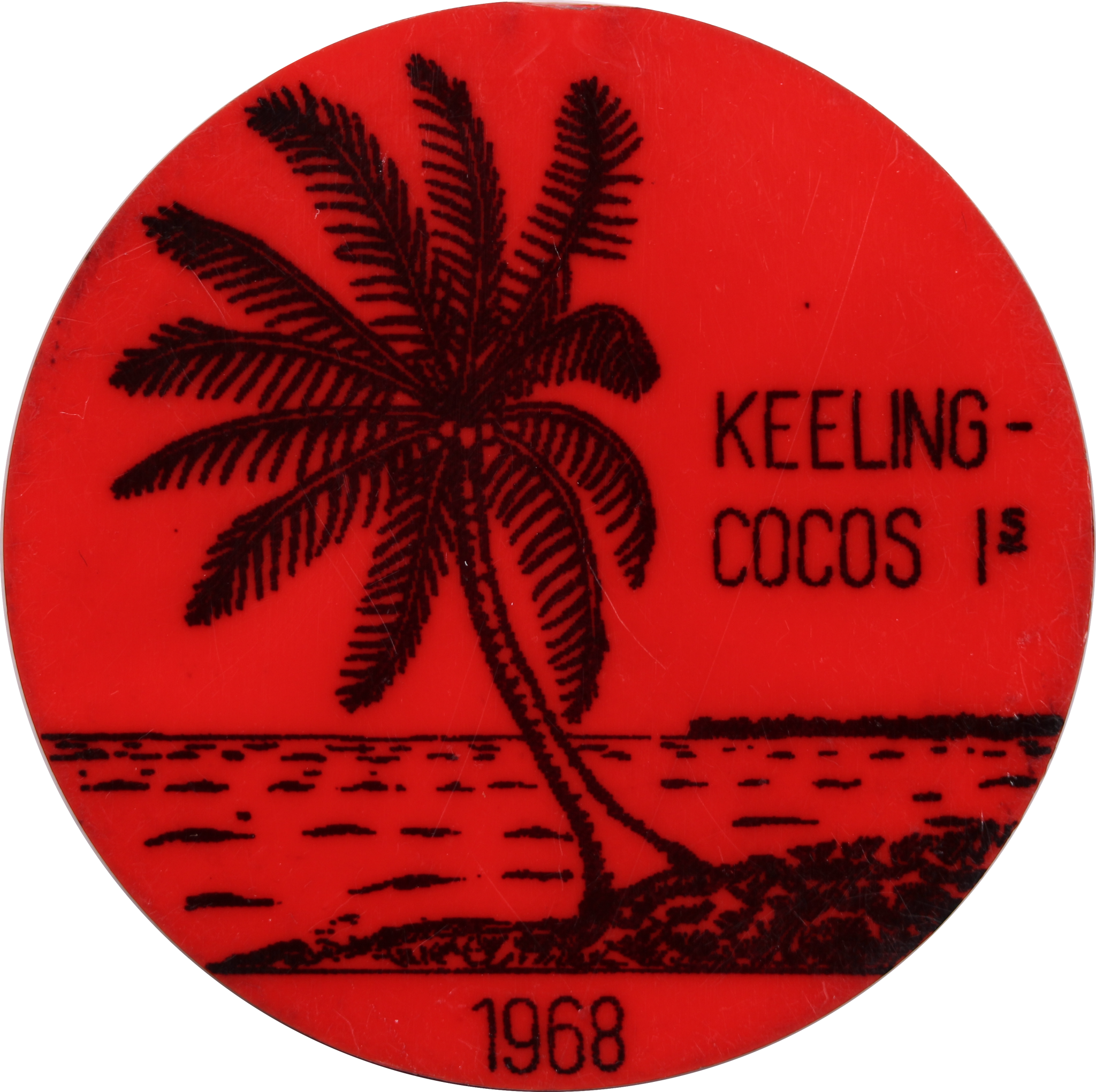 This 10 Rupee token, issued in 1968 for the Cocos (Keeling) Islands, forms part of a scarce series of plastic emergency or merchant tokens. Produced in bright, durable plastic, the set ranged from 5 to 100 Rupees, each showing a palm tree on a small island—symbolising the Cocos’ long-standing coconut industry. Their exact function remains uncertain, though evidence suggests local use in trade or as substitutes for small change.