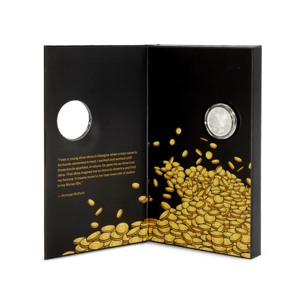 - Includes the full origin story of Scrooge’s first dime and a Mark of Authenticity
