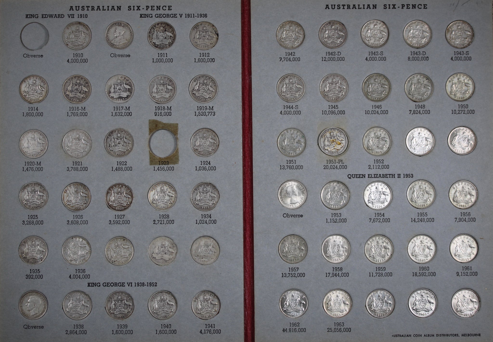 A great starting point for a Sixpence collector or for someone who doesn't have the time to put together a set one coin at a time!Note: a few gaps in the collection as per imagesGrades range from VG to EF.