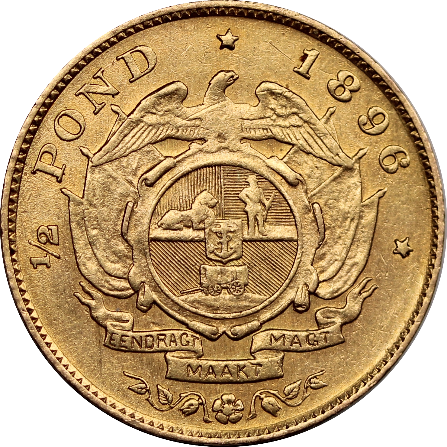 The 1897 South Africa Gold Half Pond, struck under President Paul Kruger. Part of the historic Kruger series, it features Kruger’s portrait and the Zuid-Afrikaansche Republiek (ZAR) coat of arms