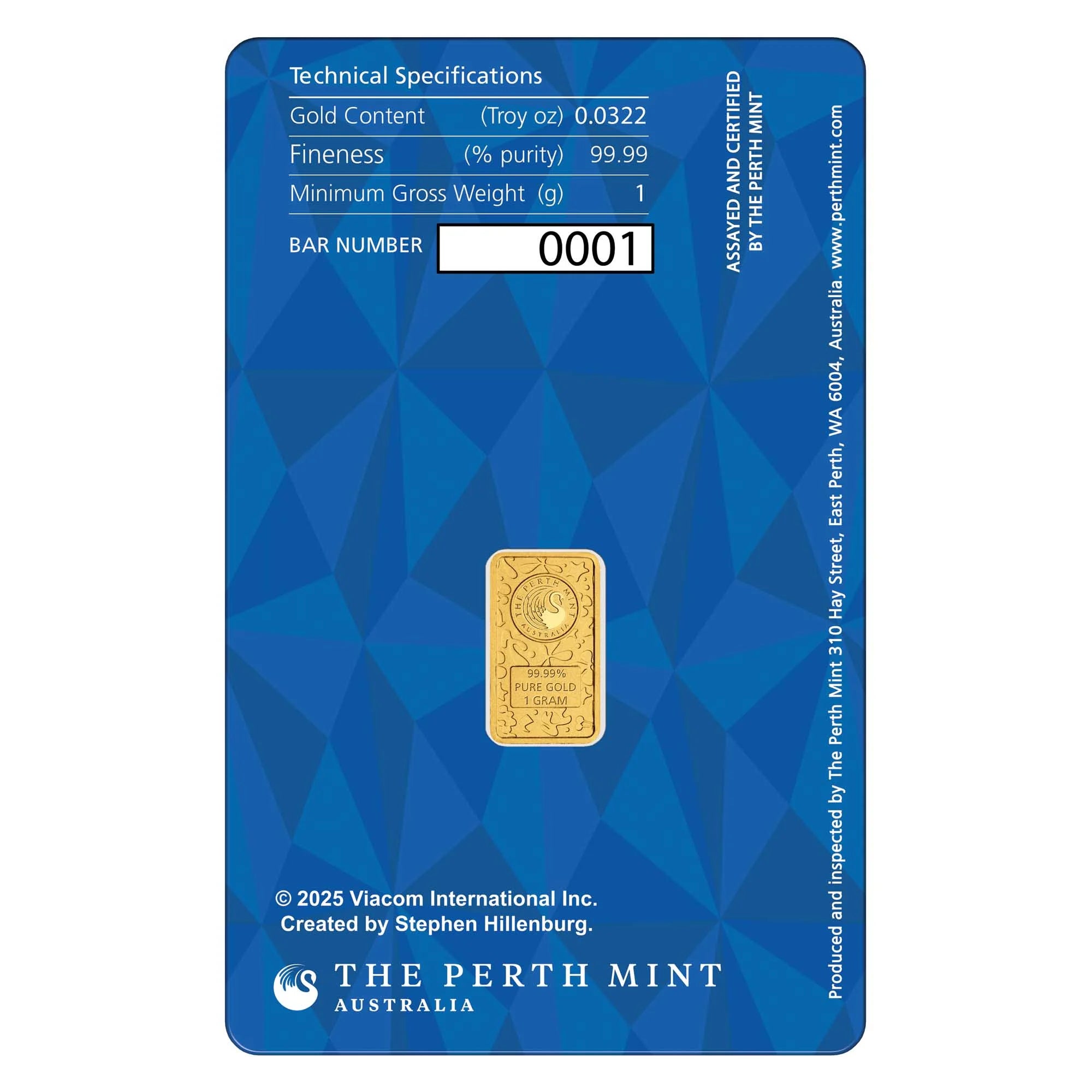 This carefully crafted pure gold bar features a minted impression of SpongeBob SquarePants on a background with illustrated motifs. Included in the design is the official ‘SpongeBob SquarePants’ logo.
