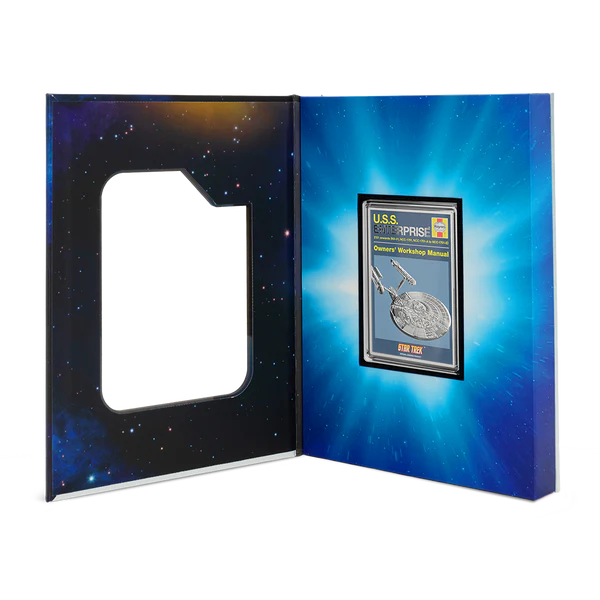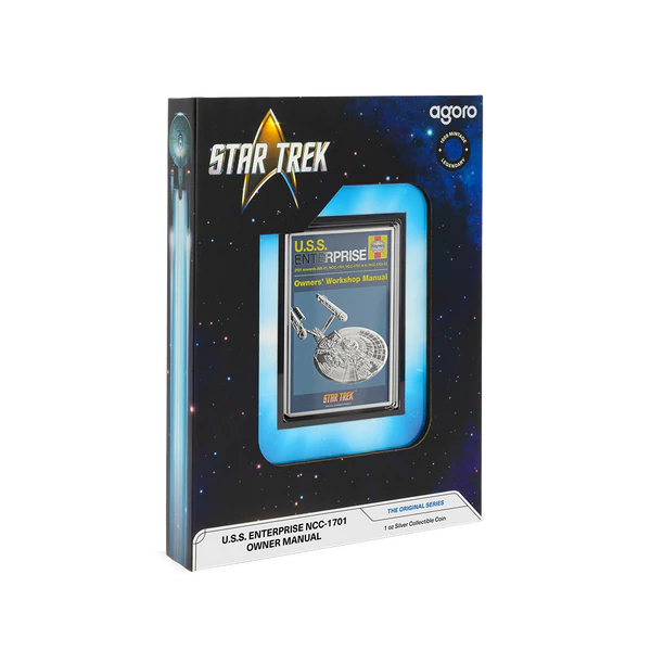 Every Star Trek™ ship captain needs an owner's manual, and the U.S.S. Enterprise NCC-1701 leads the way in this new three-part series. Struck from 1oz of 999 pure silver, this collectible features the iconic starship on a bold, retro-style backdrop, complete with engraved schematics and classic Starfleet flair.