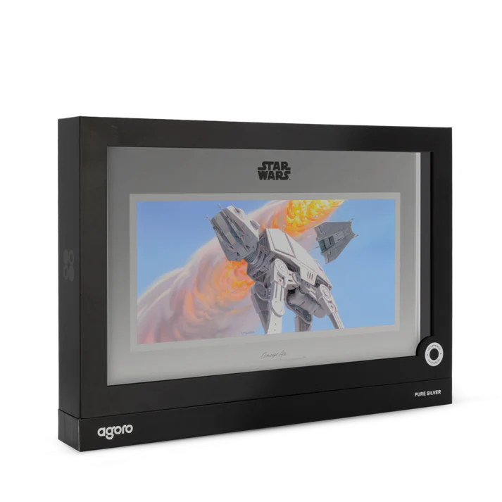 This 1oz 999 pure silver collectible is the second release in Agoro’s STAR WARS™ Concept Art Series, featuring an imposing AT-AT™ advancing across the battlefield as a Snowspeeder™ cuts past a blazing explosion.